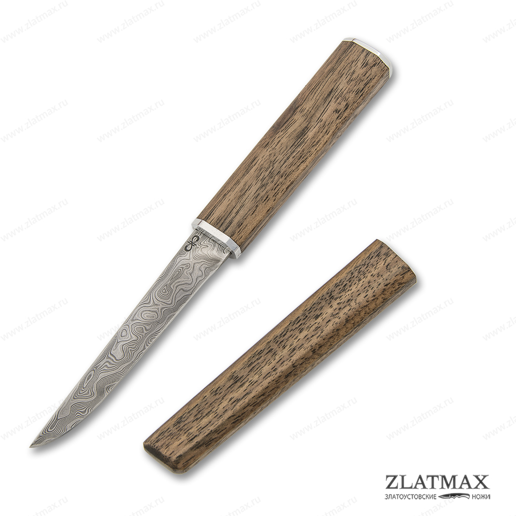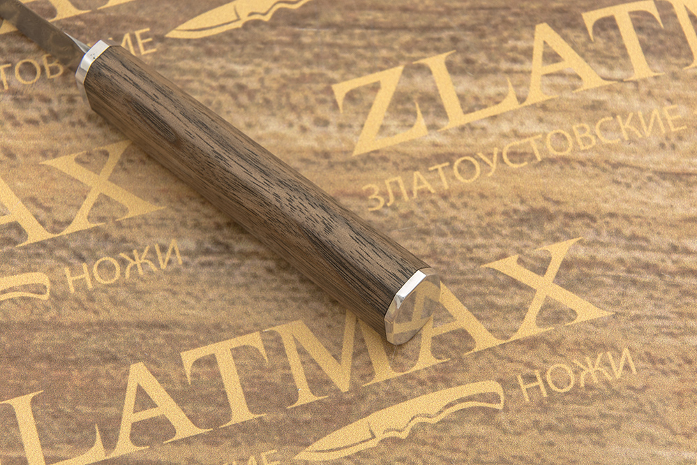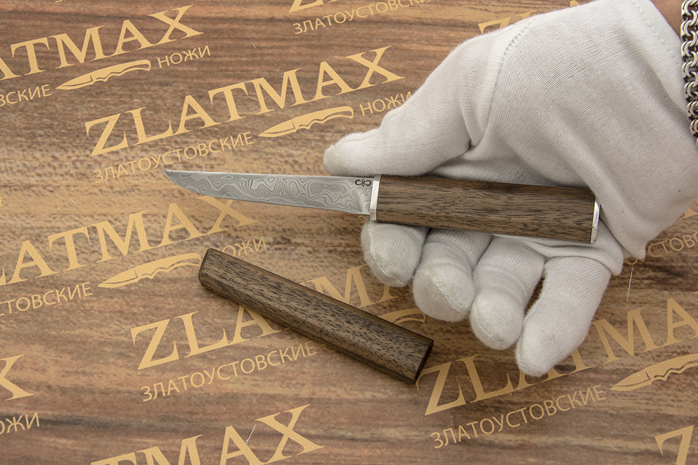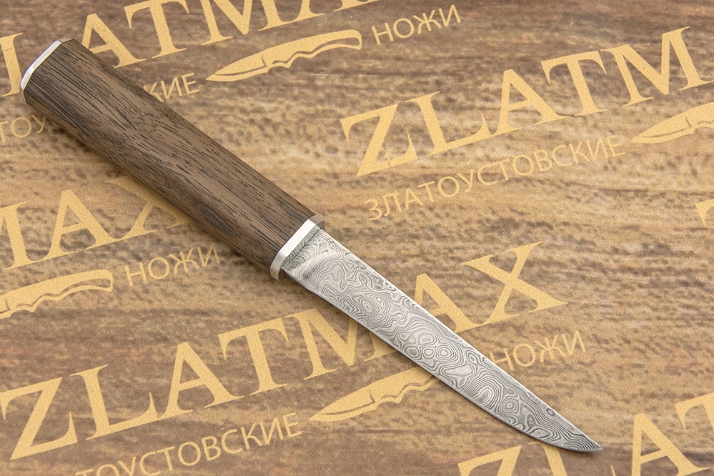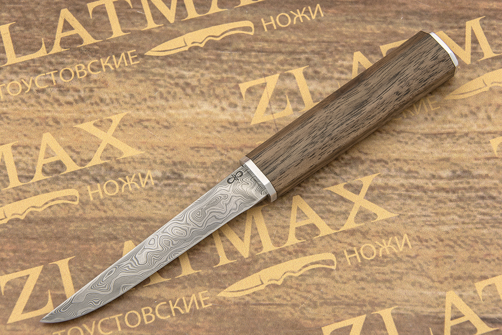 Этот бесподобный нож имеет собственное, отдельное предназначение. Не говоря уже о внешней его оболочке, он изготовлен из высоколегированной дамасской стали, которая известна современной металлургии. Орех взят за основу изготовления рукояти, как надежный, достаточно красивый материал. Он не утяжеляет конструкцию и не даст орудию выскользнуть из рук. Такой нож больше всего пригодится в канцелярии, откуда и понес звание «офисного». Как вариант, эта модель ножа хороша для презента близким людям, сочетая высокое качество в довольно привлекательной цене.