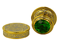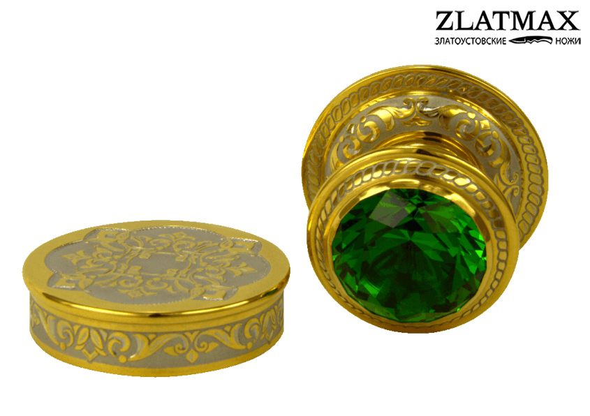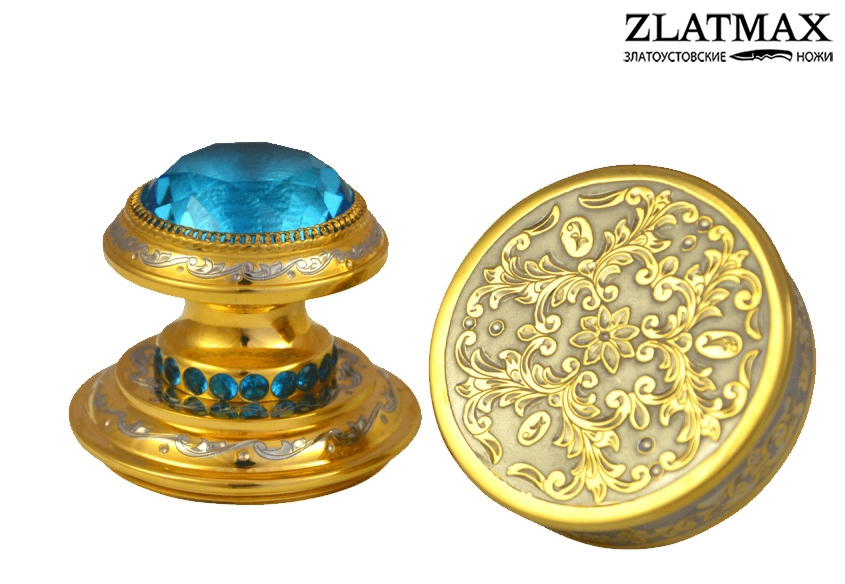 В корпус печати инкрустированы фианиты, расцветку которых Вы можете подобрать самостоятельно, следуя как Вашим предпочтениям, так и корпоративному цвету организации, тем самым вы сможете получить уникальную печать на заказ. Вся поверхность печати украшена тончайшей гравировкой в виде растительного орнамента.