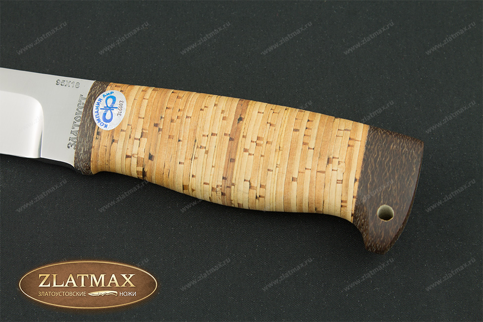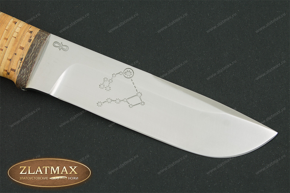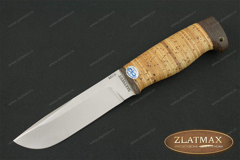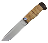 Крупный, солидный, прочный нож с надежным клинком разделочного типа, имеющим вогнутые линзовидные спуски на три четвертых ширины клинка, образующие тонкое, прекрасно режущее лезвие. Демонстрирует отличные режущие качества. Весьма серьезный инструмент с толщиной обуха 4,5 мм. Классическая эргономичная форма рукояти удобна даже для большой руки, уверенно и прочно лежит и в ладони, даже если она в рукавице, что немаловажно для жителей Севера. Оптимальной величины подпальцевая выемка не дает соскользнуть пальцам при резах от себя. Монтаж рукояти сквозной, неразборный. На навершии рукояти имеется отверстие под темляк. Отличный выбор для жителей Севера и зимней охоты.