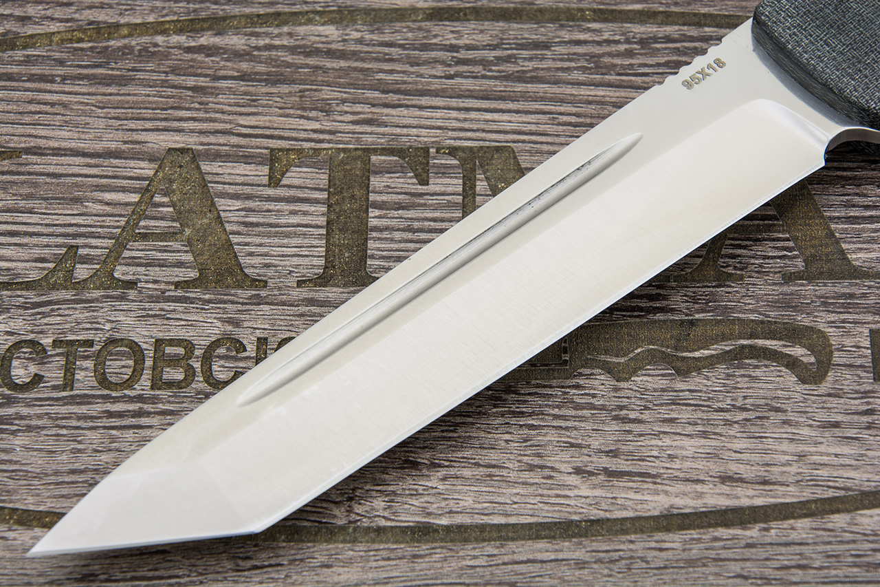 Тактический (городской) нож «Ронин» выполнен по типу тантоида. Нож имеет высокопрочную конструкцию накладного монтажа рукояти. Толщина клинка 3,2 мм оптимально подойдет для разного применения ножа, как бытового, так и туристического.