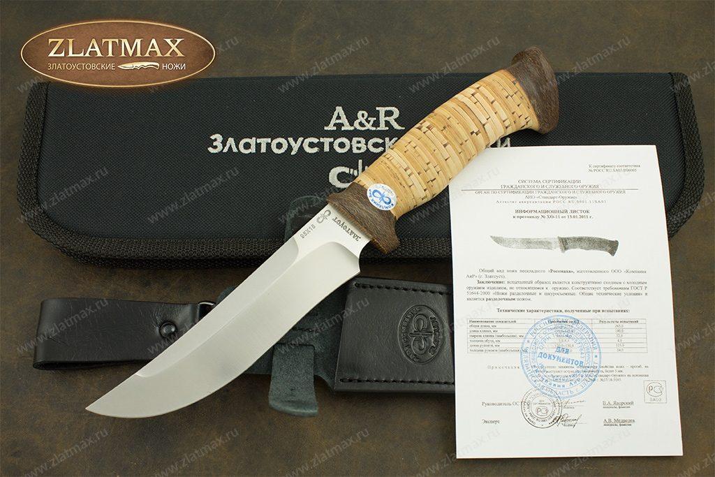 Нож Росомаха является ножом разделочным и не относится к гражданскому холодному оружию. Соответствует требованиям ГОСТ Р 51644-2000 «Ножи разделочные и шкуросъемные. Общие технические условия».