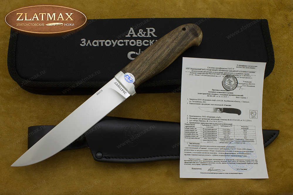 Нож Сапсан является ножом разделочным и не относится к гражданскому холодному оружию. Соответствует требованиям ГОСТ Р 51644-2000 «Ножи разделочные и шкуросъемные. Общие технические условия».