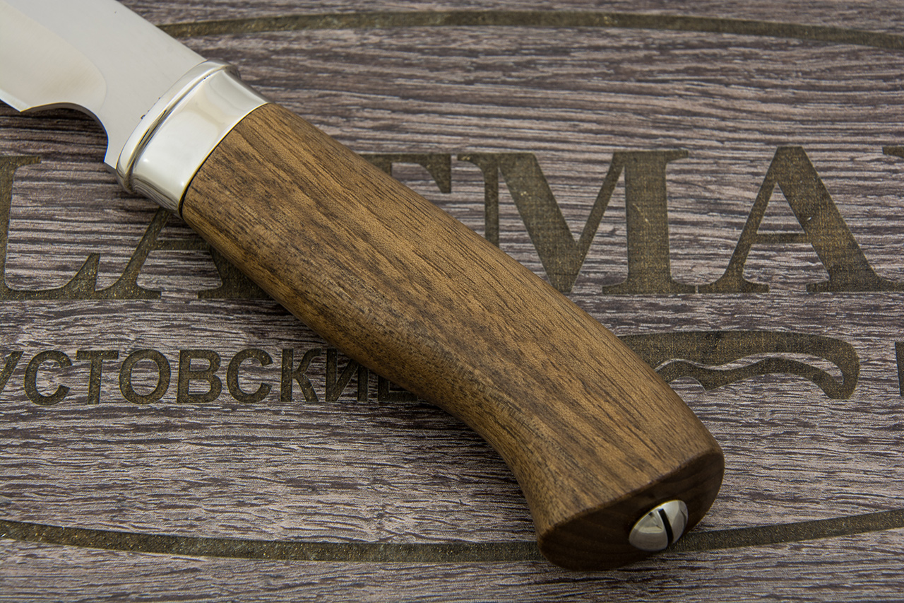 Такая рукоять будет легкой, долго прослужит своему обладателю, не будет скользить в руке. При низких температурах может оставаться холодной. Стоит помнить, что орех не любит большие нагрузки, поэтому таким ножом лучше не стучать по другим предметам и следить за тем, чтобы такой нож не падал с большой высоты.