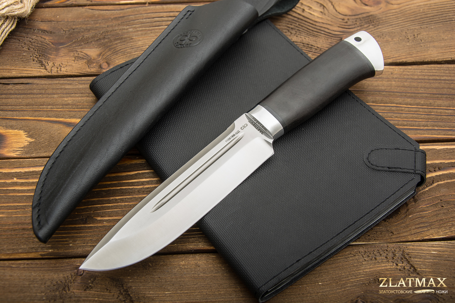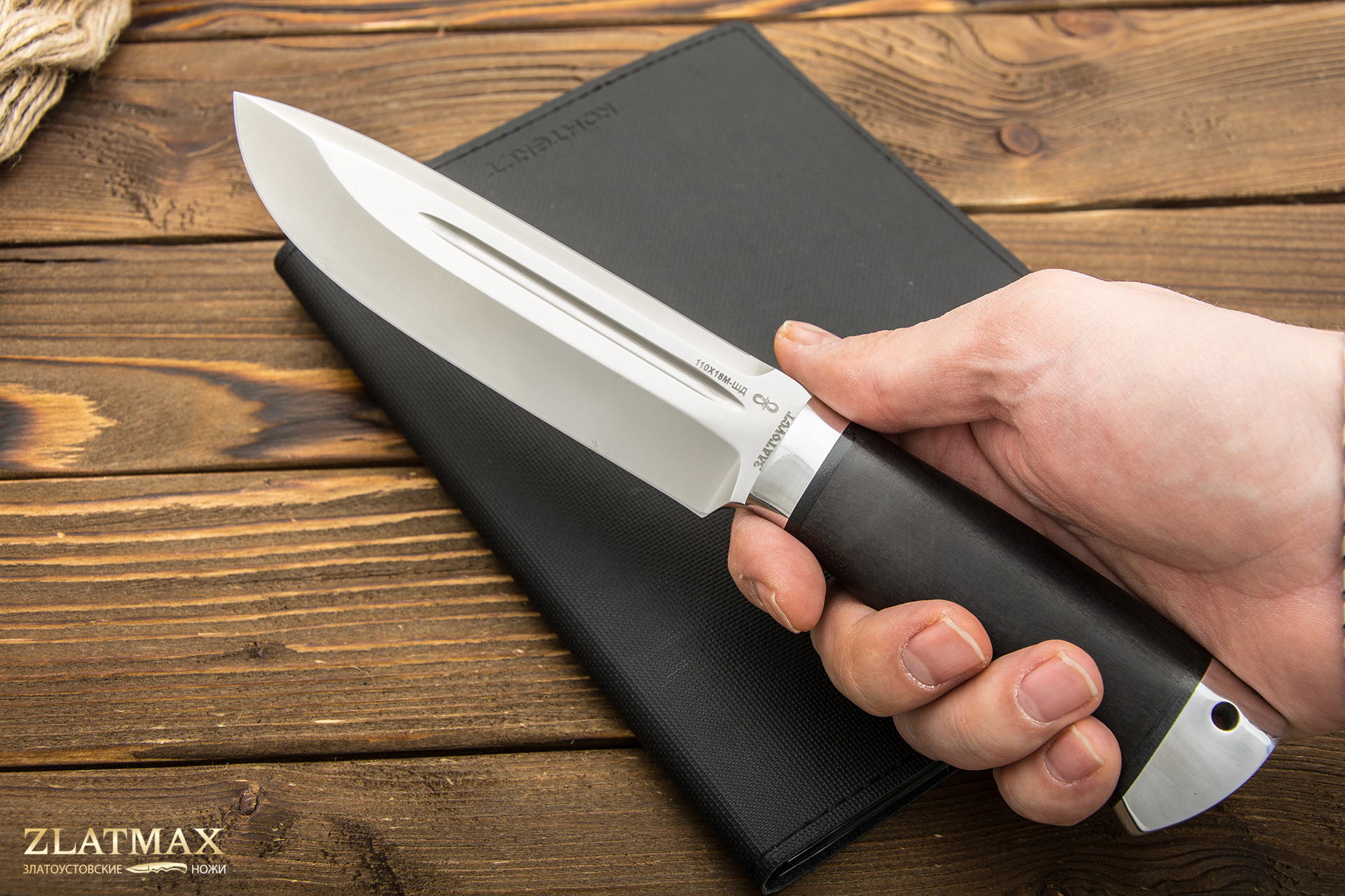 Хищный, массивный нож, который мы рекомендуем использовать туристам, любителям проводить время на природе, ну и, конечно же, охотникам. Шестимиллиметровый обух делает инструмент несокрушимым, как внешне, так и по режуще-рабочим качествам. Два дола по обеим сторонам добавляют уверенности в прочности такого ножа. До половины обуха протягивается фальшлезвие, которое пригодится при рубке костей, а толстый обух может помочь при необходимости забить гвоздь. «Скорпион» выполнен в современном стиле, отлично режет колбасу и хлеб, не ломая их на куски, а вот красиво и тонко нарезать сыр нужно приноровиться. Им легко настрогать лучину для костра, прорубить заросли и даже молодые березы для устройства ночлега в экстремальной ситуации. На рукояти имеется отверстие под темляк.