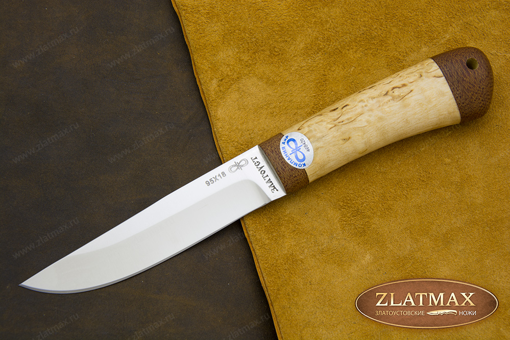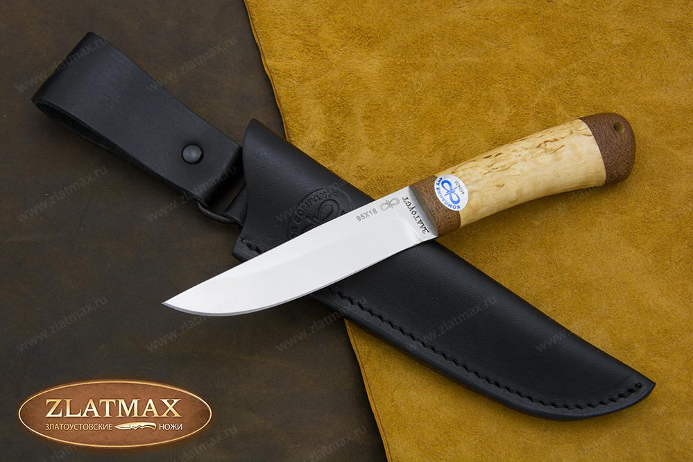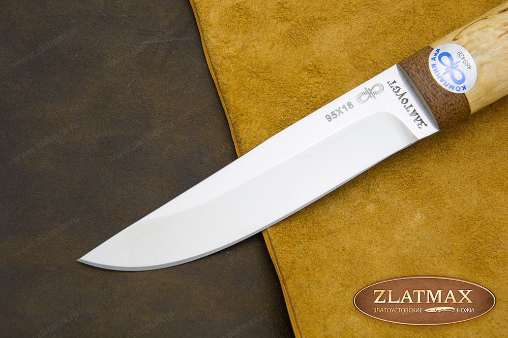 95Х18 - это без преувеличения лучшая сталь российского производства, а потому она пользуется огромной популярностью у отечественных и зарубежных компаний. При правильном изготовлении металл получает отличную твердость, гибкость и прочность. Ножи из этого материала служат, как правило, не один год. И при этом могут выглядеть так, как будто были сделаны только вчера. Но надо только стараться избегать попадания на лезвие соли и долгое воздействие влаги. Единственный минус – клинок из такой стали очень сложно заточить. Придется потратить много сил или даже воспользоваться специальными устройствами. Но зато хорошую заточку ножи держат достаточно долго.