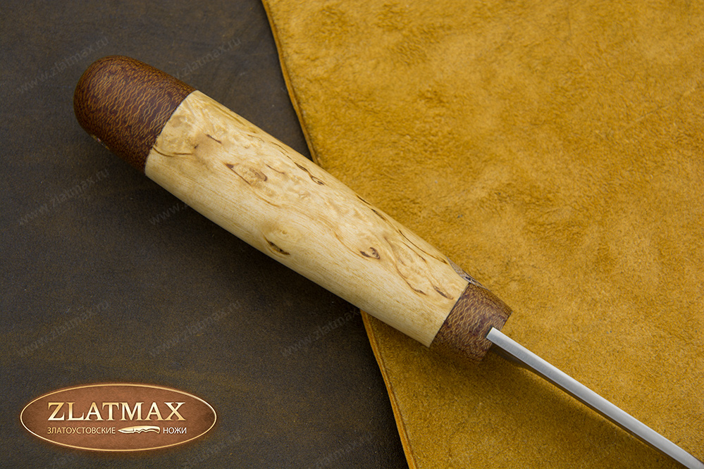 Рукоять из этого материала легкая, в меру теплая, не скользит, удобно ложится в руку. Ее пропитывают маслами, благодаря чему она не трескается, не покрывается плесенью.