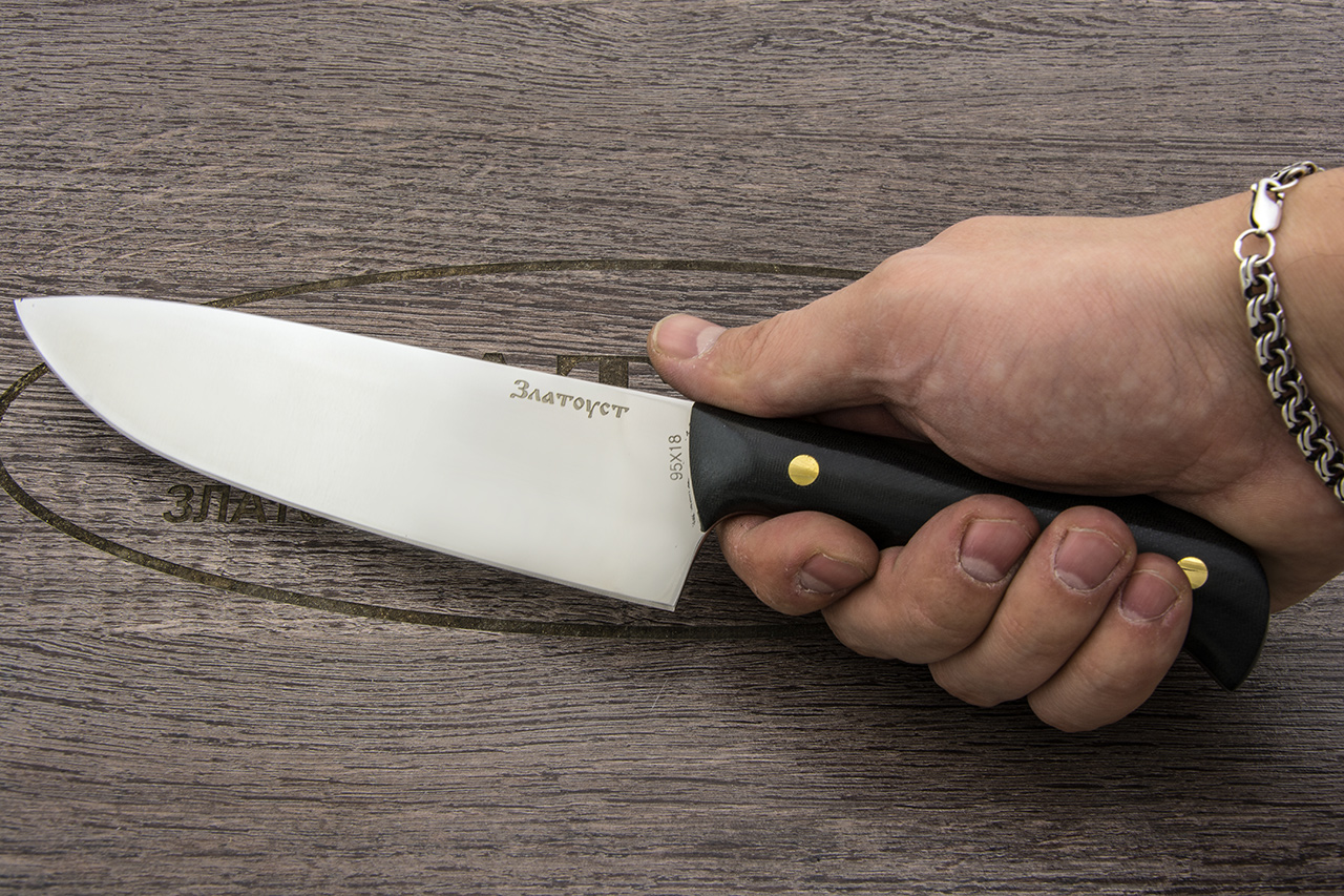 95Х18 - это без преувеличения лучшая сталь российского производства, а потому она пользуется огромной популярностью у отечественных и зарубежных компаний. При правильном изготовлении металл получает отличную твердость, гибкость и прочность. Ножи из этого материала служат, как правило, не один год. И при этом могут выглядеть так, как будто были сделаны только вчера. Но надо только стараться избегать попадания на лезвие соли и долгое воздействие влаги. Единственный минус – клинок из такой стали очень сложно заточить. Придется потратить много сил или даже воспользоваться специальными устройствами. Но зато хорошую заточку ножи держат достаточно долго.