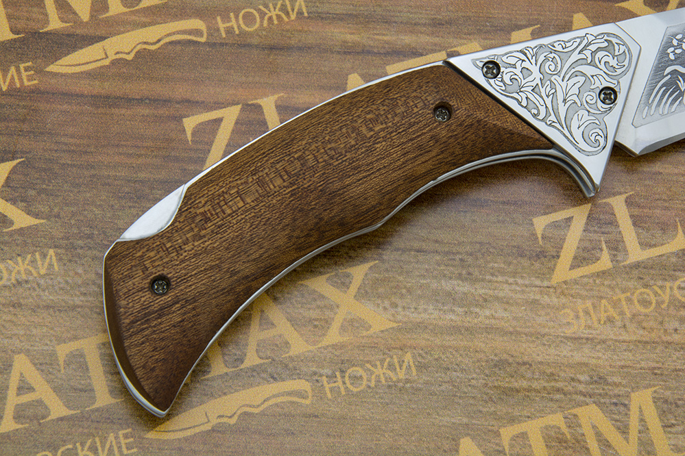 Такая рукоять будет легкой, долго прослужит своему обладателю, не будет скользить в руке. При низких температурах может оставаться холодной. Стоит помнить, что орех не любит большие нагрузки, поэтому таким ножом лучше не стучать по другим предметам и следить за тем, чтобы такой нож не падал с большой высоты.