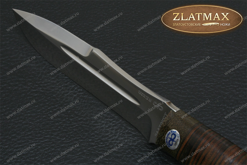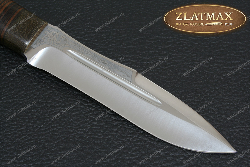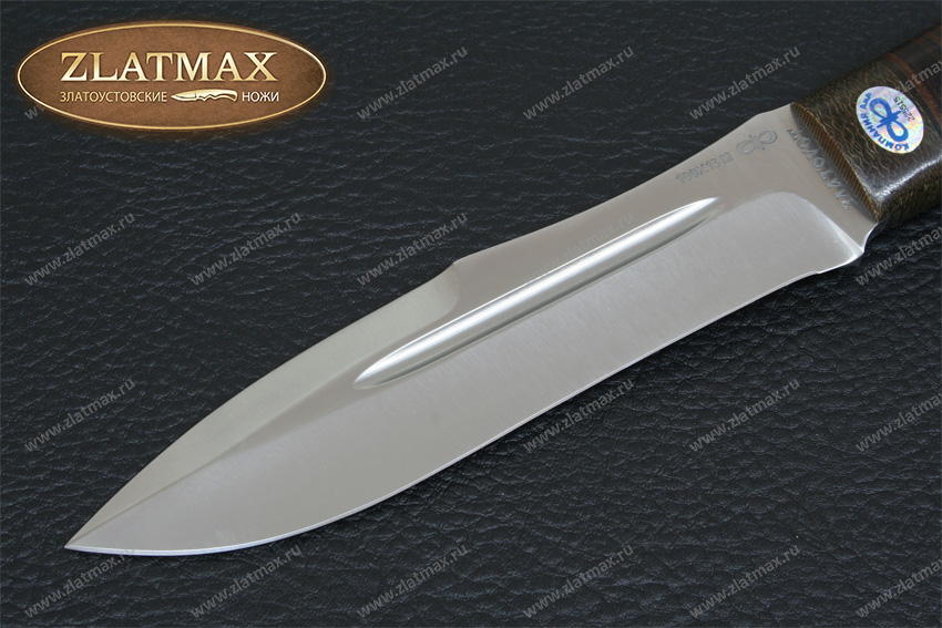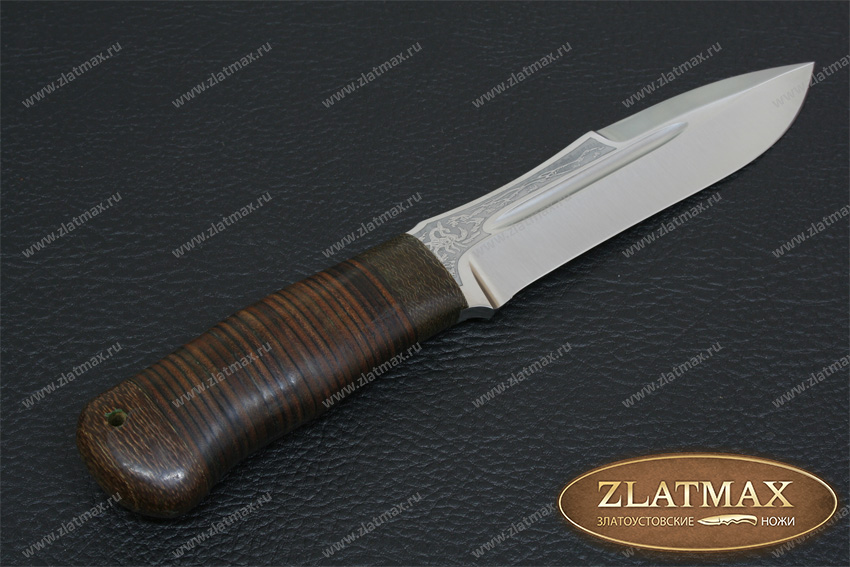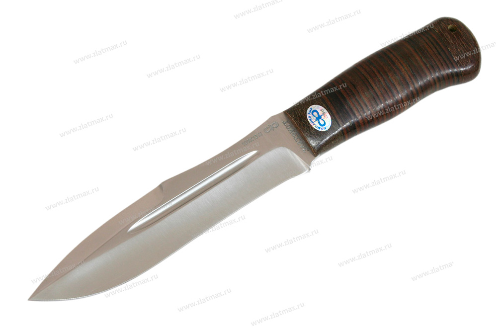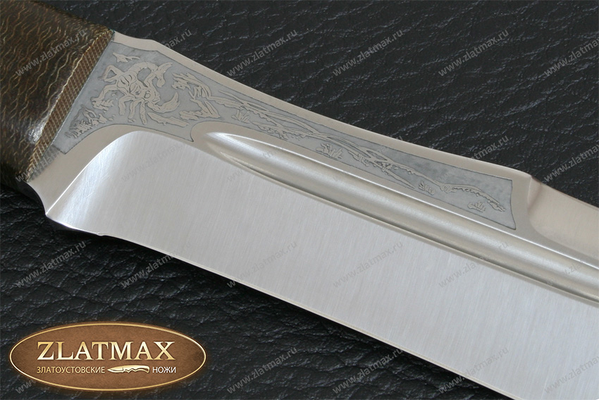 Хищный, массивный нож, который мы рекомендуем использовать туристам, любителям проводить время на природе, ну и, конечно же, охотникам. Шестимиллиметровый обух делает инструмент несокрушимым, как внешне, так и по режуще-рабочим качествам. Два дола по обеим сторонам добавляют уверенности в прочности такого ножа. До половины обуха протягивается фальшлезвие, которое пригодится при рубке костей, а толстый обух может помочь при необходимости забить гвоздь. «Скорпион» выполнен в современном стиле, отлично режет колбасу и хлеб, не ломая их на куски, а вот красиво и тонко нарезать сыр нужно приноровиться. Им легко настрогать лучину для костра, прорубить заросли и даже молодые березы для устройства ночлега в экстремальной ситуации. На рукояти имеется отверстие под темляк.