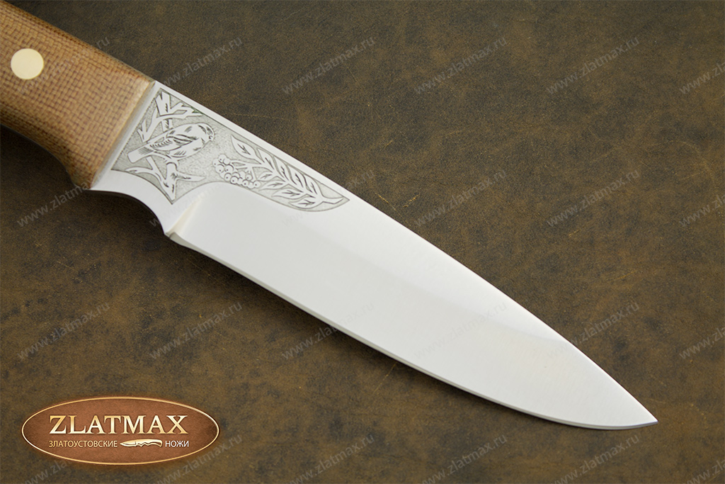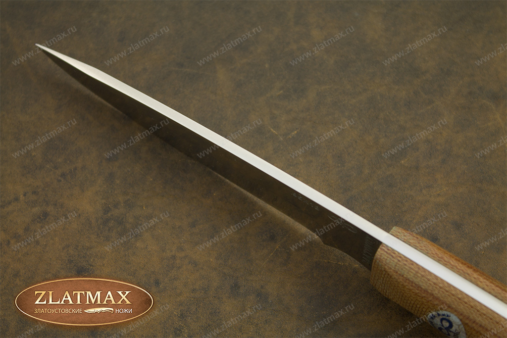 Легкий удобный нож с клинком, имеющим пологие вогнутые линзовидные спуски на две трети ширины клинка, образующие тонкое, прекрасно режущее лезвие толщиной около 0,6 мм в районе подводов. Обух клинка со спинкой рукояти имеет одну плавную дугообразную линию. На пяте перед рукоятью есть подпальцевый вырез для точных работ. Необходимо проявлять некоторую осторожность при работе с большими боковыми нагрузками на лезвие ножа, ввиду небольшой толщины клинка в рабочей части. Монтаж рукояти накладной плашечный. На навершии рукояти, функцию которого выполняет выступающий из под плашек хвостовик, имеется отверстие под темляк. Этот нож удобный помощник при работе с продуктами и охоте на боровую и водоплавающую дичь.