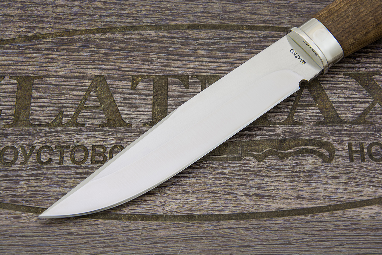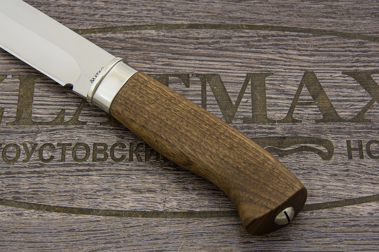 Такая рукоять будет легкой, долго прослужит своему обладателю, не будет скользить в руке. При низких температурах может оставаться холодной. Стоит помнить, что орех не любит большие нагрузки, поэтому таким ножом лучше не стучать по другим предметам и следить за тем, чтобы такой нож не падал с большой высоты.