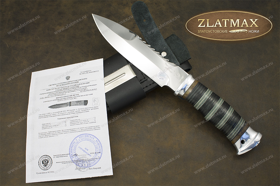 Такой хищный клинок, похожий на кинжал, с которым не сравнится ни одна модель из данного типа – этим обладает нож «Спас-1» МЧС. Его универсальное применение славится походами и различными спасательными операциями. Форма орудия полностью приспособлена для нанесения колких ударов, а выведенный серрейторный участок по обуху клинка выступает удобным и нужным дополнением. «Спас-1» имеет отличные характеристики прочности, за счет которой его можно использовать в тяжелых работах и не боятся значительных нагрузок.