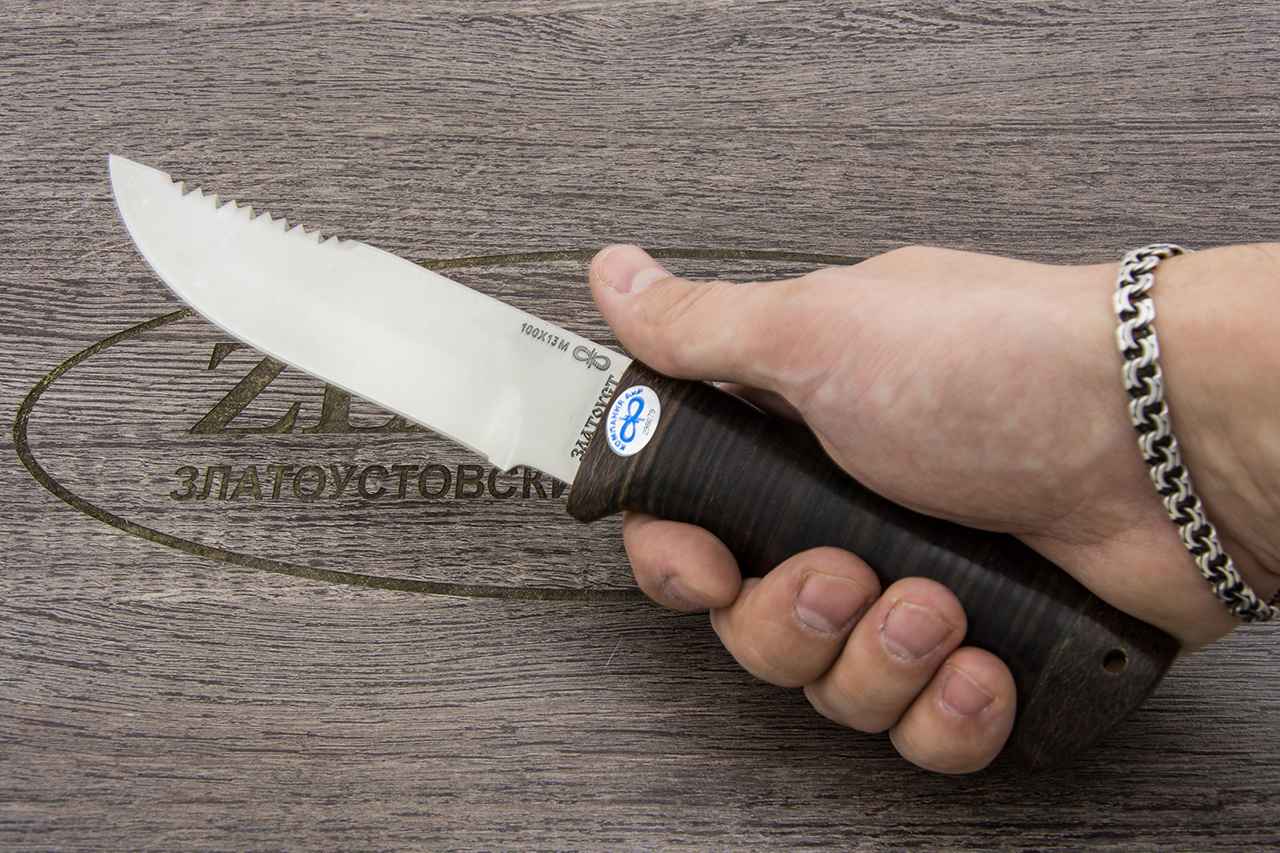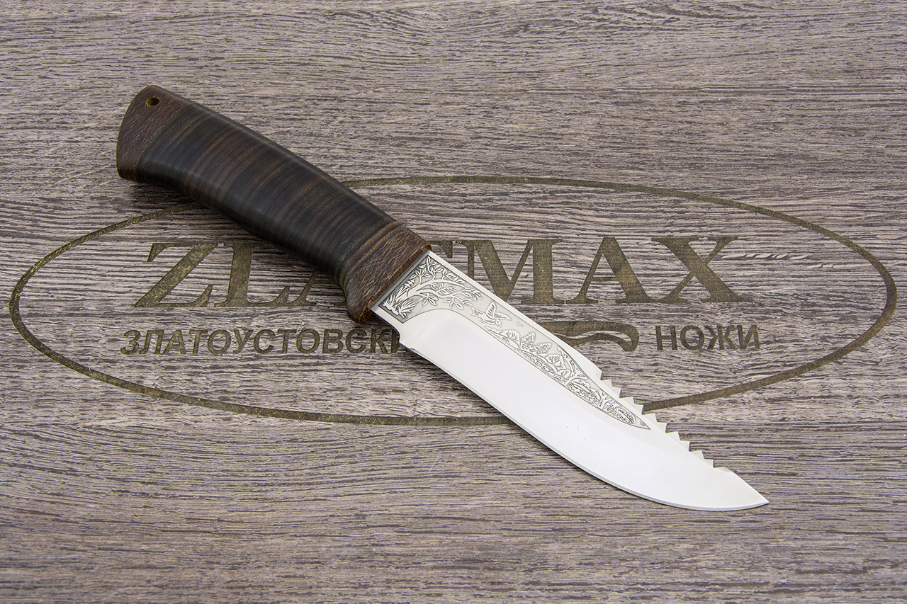 Нож обрел заслуженную популярность среди покупателей и, как правило, не зря. Мало того, что он славится высокими качествами своей работоспособности, так еще и имеет солидный, довольно привлекательный внешний вид. Классический по стилю клинок легкий и прочный. В конструкции есть фальшлезвие с нанесением пилы-заточки. Она поможет почистить рыбу от чешуи, надпилить хрящики и кости пойманных на охоте животных. Эргономичная форма рукоятки ножа удобна любому размеру ладони. Это находка не только для новичка, но и почетное место в коллекции опытного охотника!