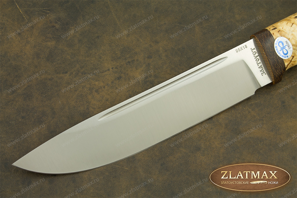 95Х18 - это без преувеличения лучшая сталь российского производства, а потому она пользуется огромной популярностью у отечественных и зарубежных компаний. При правильном изготовлении металл получает отличную твердость, гибкость и прочность. Ножи из этого материала служат, как правило, не один год. И при этом могут выглядеть так, как будто были сделаны только вчера. Но надо только стараться избегать попадания на лезвие соли и долгое воздействие влаги. Единственный минус – клинок из такой стали очень сложно заточить. Придется потратить много сил или даже воспользоваться специальными устройствами. Но зато хорошую заточку ножи держат достаточно долго.