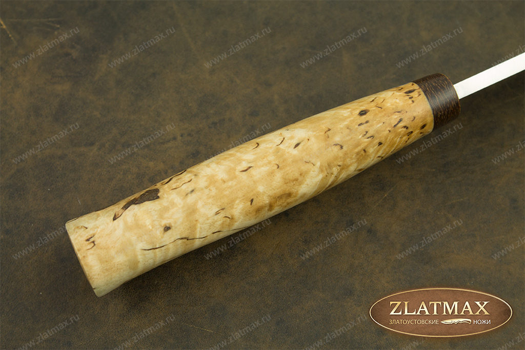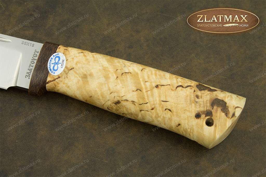 Узор и фактура каждого изделия уникальны, они не повторяются. Карельская береза позволяет создавать уникальные рукояти, которые притягивают взгляд и становятся любимым экземпляром в коллекции.