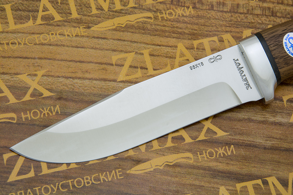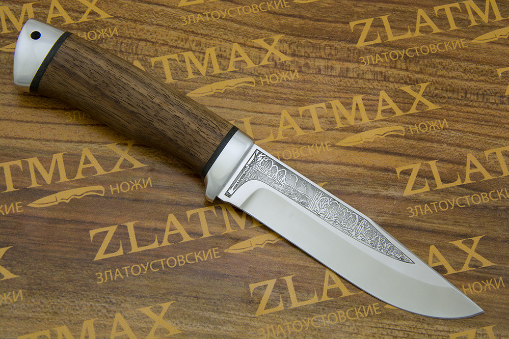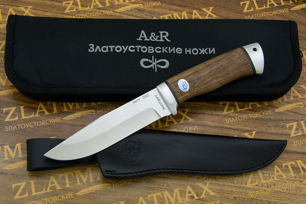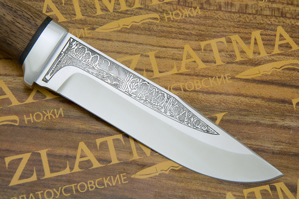 Средний универсальный, легкий и прочный нож с клинком, имеющим популярный обушок с прямым скосом. Пологие вогнутые линзовидные спуски от середины клинка образуют тонкое, прекрасно режущее лезвие. Демонстрирует отличные режущие качества. Толщина обуха в 2,4 мм позволяет оставить широкую голомень, что придает клинку дополнительную прочность. Эргономичная форма рукояти уверенно и прочно ложится в любую ладонь, даже в рукавице. Оптимальной величины гарда не дает соскользнуть пальцам при резах от себя. Монтаж рукояти сквозной, неразборный. На навершии рукояти имеется отверстие под темляк. Отличный выбор для большинства видов работы в лесу.