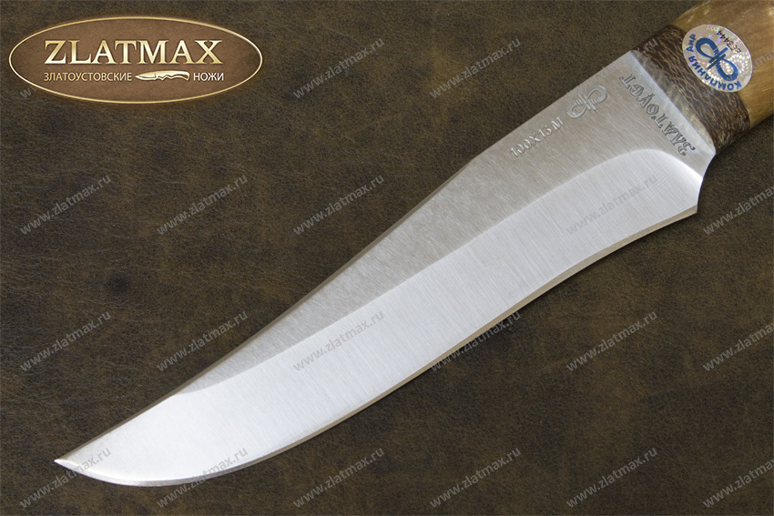Универсальность ножа «Восток» притягательна своей легкостью и прочностью, не смотря на небольшой размер инструмента. Клинок выполнен в форме ятагана, спуски линзовидные, вогнутые, идущие от середины ширины клинка. Дополнительную прочность этому ножу придает широкая голомень на обухе клинка в 3 мм. Таким оружием достаточно удобно работать, благодаря соответственной форме рукояти. За счет пяты клинка, которая заменяет упор, пальцы не смогут соскользнуть во время резки «от себя». Клинок не разбирается, монтаж сквозной. Подходит для многих видов работ любителей и профессионалов, в том числе и в лесу.