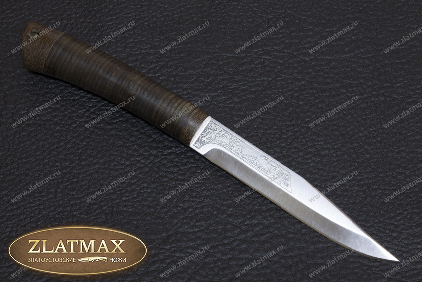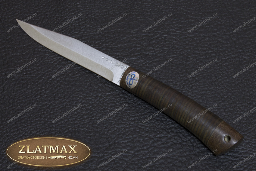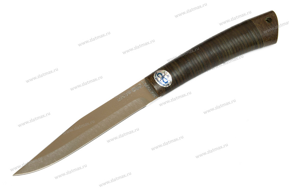 Небольшой универсальный и очень легкий нож с узким клинком классической формы заслуженно пользуется популярностью у приверженцев активного отдыха. Клинок имеет вогнутые линзовидные спуски от половины ширины клинка. При толщине обуха в 2 мм клинок имеет неширокую пяту. Ножом легко не только освежевать трофей, ошкурить, выпотрошить, разделать тушку, но и приготовить в лагере праздничный ужин. Удобная форма рукояти позволяет уверенно работать с мелкими трофеями, а сквозной (неразборный) монтаж придает ножу хорошую прочность. На навершии рукояти имеется отверстие под темляк. Прекрасный нож для разделки мелкого пушного зверя, боровой и водоплавающей дичи, а также рыбы.