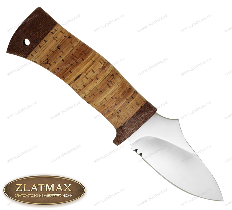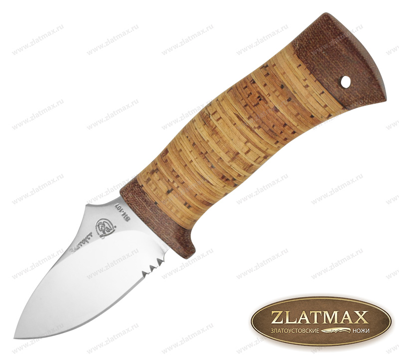 Особенность бересты - она имеет низкую теплопроводность, поэтому пользоваться изделиями из нее комфортно и в теплое, и в холодное время года. Рукоять ножа, выполненная из бересты, не будет скользить в руке, гарантирует надежный хват, даже если она испачкана в чем-то.