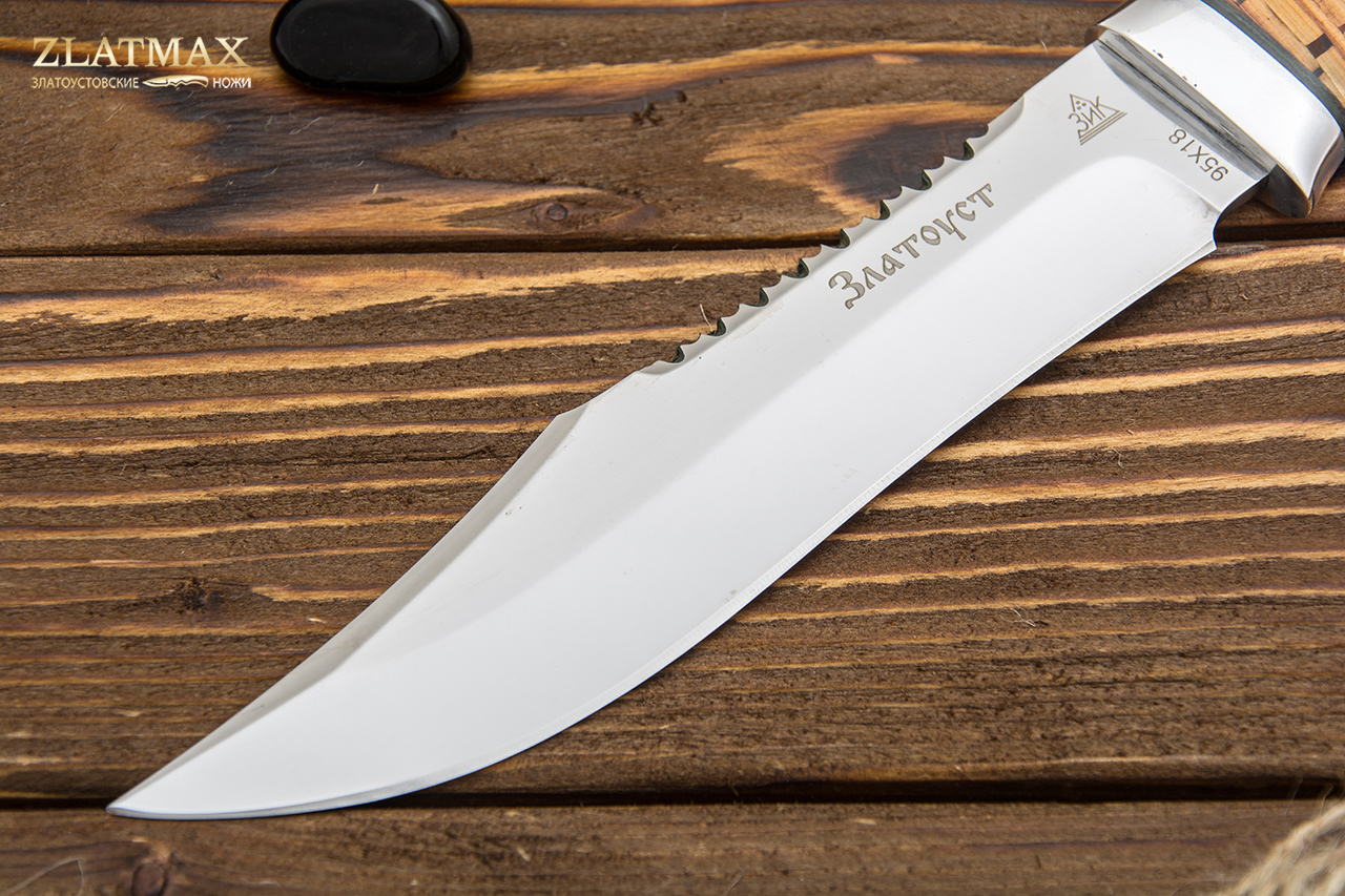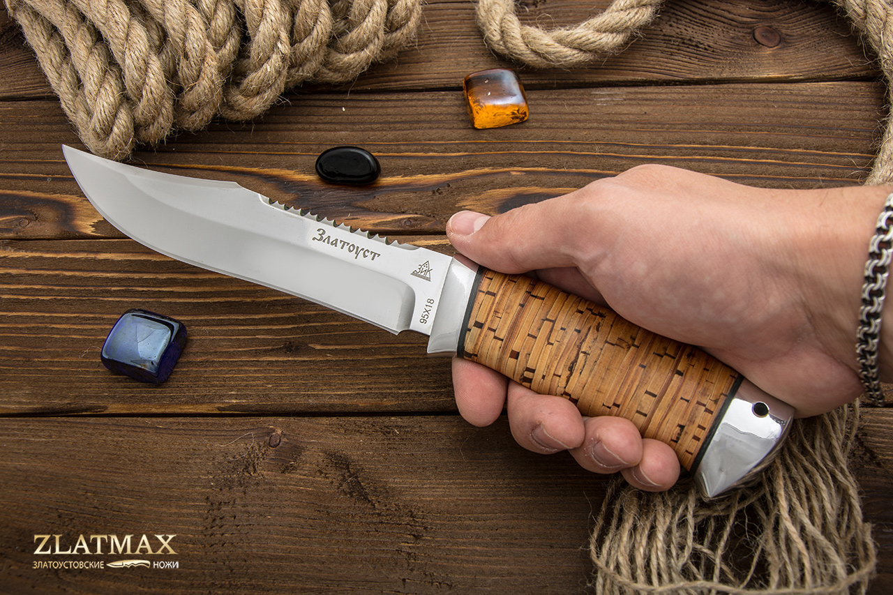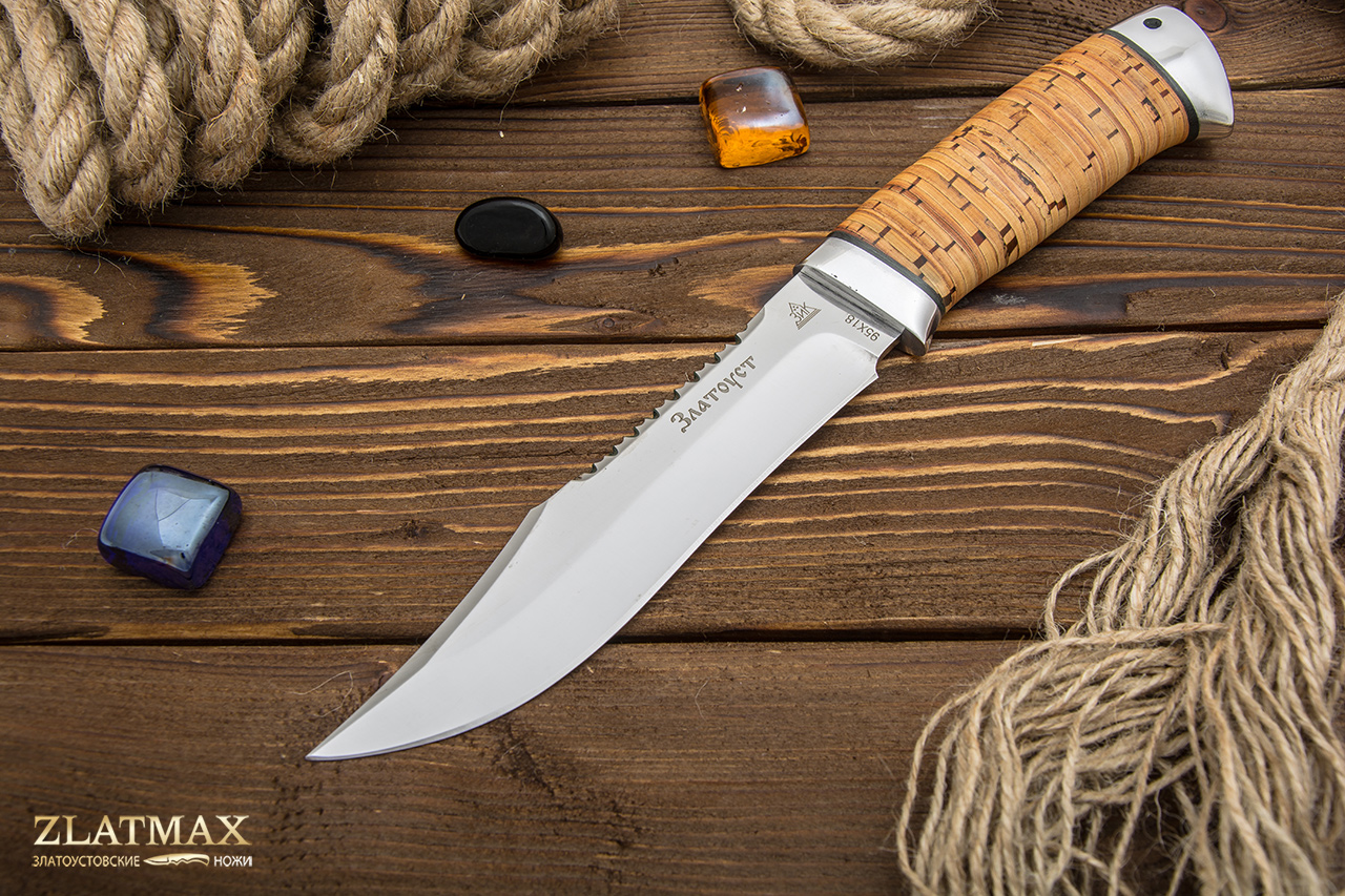 95Х18 - это без преувеличения лучшая сталь российского производства, а потому она пользуется огромной популярностью у отечественных и зарубежных компаний. При правильном изготовлении металл получает отличную твердость, гибкость и прочность. Ножи из этого материала служат, как правило, не один год. И при этом могут выглядеть так, как будто были сделаны только вчера. Но надо только стараться избегать попадания на лезвие соли и долгое воздействие влаги. Единственный минус – клинок из такой стали очень сложно заточить. Придется потратить много сил или даже воспользоваться специальными устройствами. Но зато хорошую заточку ножи держат достаточно долго.