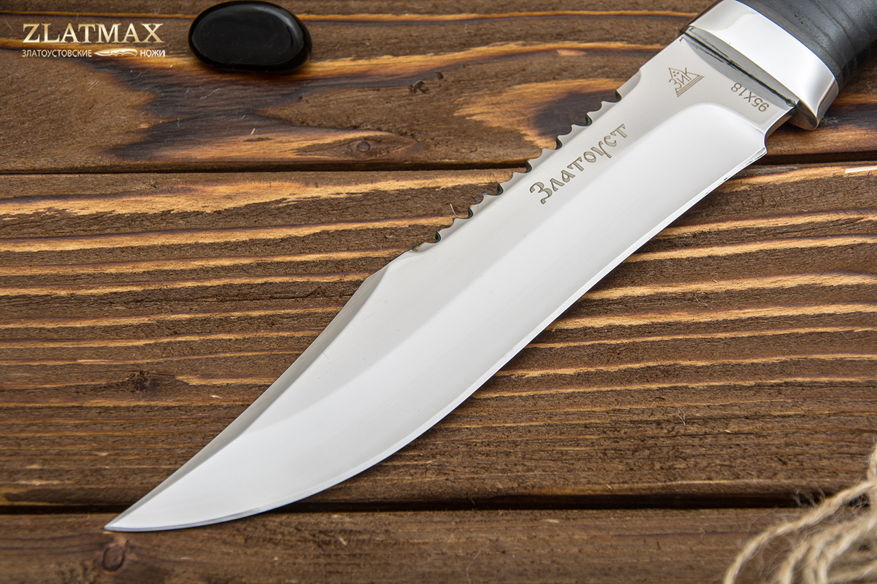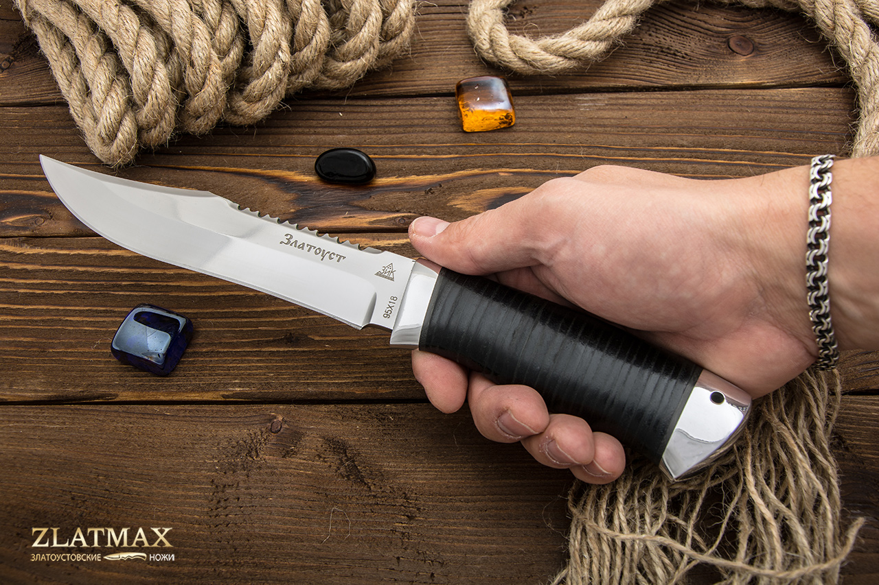 95Х18 - это без преувеличения лучшая сталь российского производства, а потому она пользуется огромной популярностью у отечественных и зарубежных компаний. При правильном изготовлении металл получает отличную твердость, гибкость и прочность. Ножи из этого материала служат, как правило, не один год. И при этом могут выглядеть так, как будто были сделаны только вчера. Но надо только стараться избегать попадания на лезвие соли и долгое воздействие влаги. Единственный минус – клинок из такой стали очень сложно заточить. Придется потратить много сил или даже воспользоваться специальными устройствами. Но зато хорошую заточку ножи держат достаточно долго.