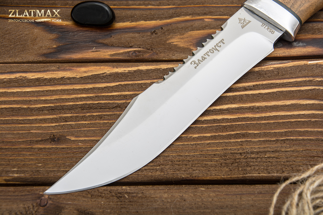 95Х18 - это без преувеличения лучшая сталь российского производства, а потому она пользуется огромной популярностью у отечественных и зарубежных компаний. При правильном изготовлении металл получает отличную твердость, гибкость и прочность. Ножи из этого материала служат, как правило, не один год. И при этом могут выглядеть так, как будто были сделаны только вчера. Но надо только стараться избегать попадания на лезвие соли и долгое воздействие влаги. Единственный минус – клинок из такой стали очень сложно заточить. Придется потратить много сил или даже воспользоваться специальными устройствами. Но зато хорошую заточку ножи держат достаточно долго.