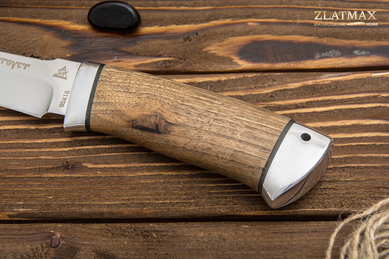 Такая рукоять будет легкой, долго прослужит своему обладателю, не будет скользить в руке. При низких температурах может оставаться холодной. Стоит помнить, что орех не любит большие нагрузки, поэтому таким ножом лучше не стучать по другим предметам и следить за тем, чтобы такой нож не падал с большой высоты.