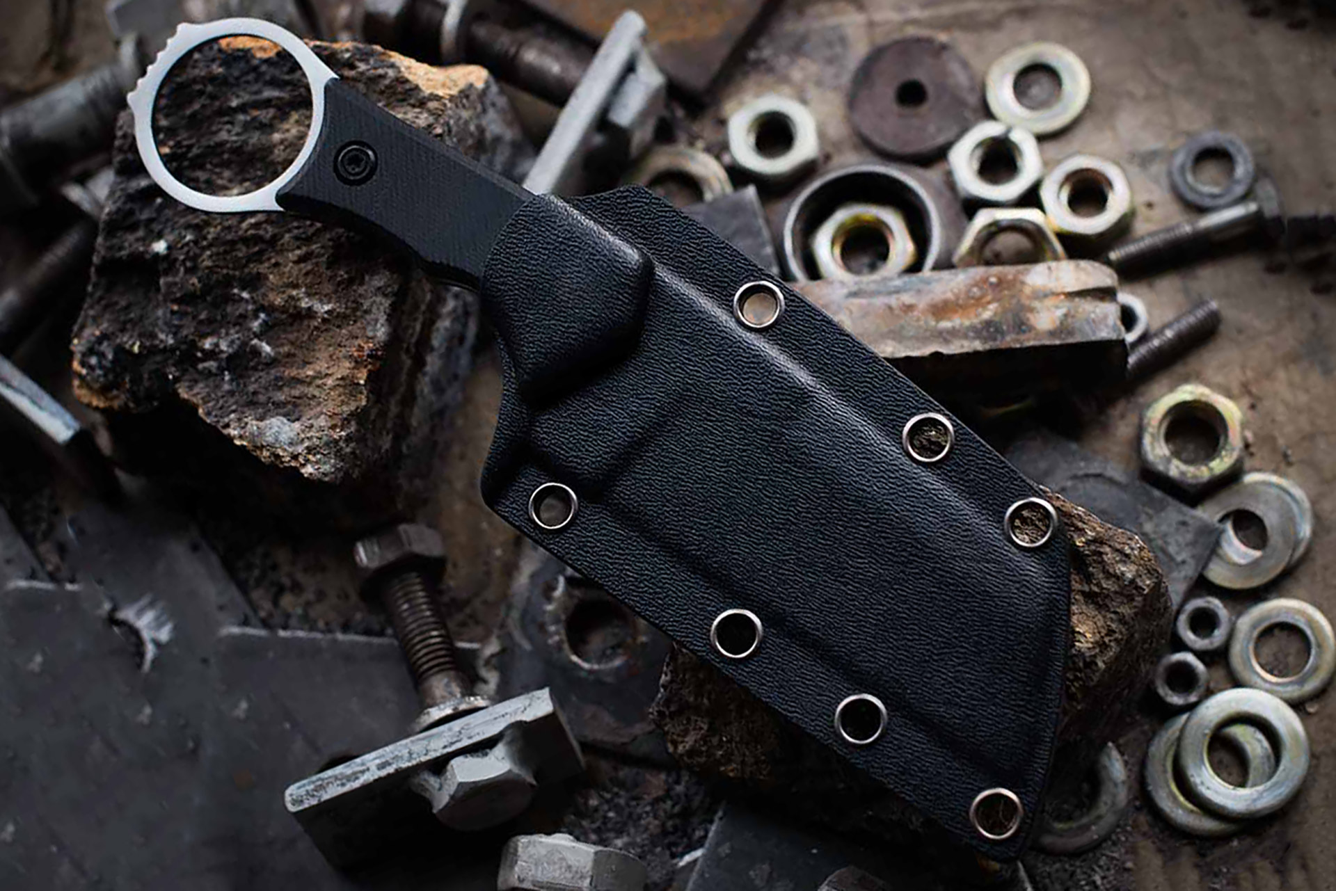 Нож комплектуется практичными ножнами из кайдекса (цвет черный). Ножны имеют крепежные отверстия, которые позволяют разместить нож на одежде или снаряжении: