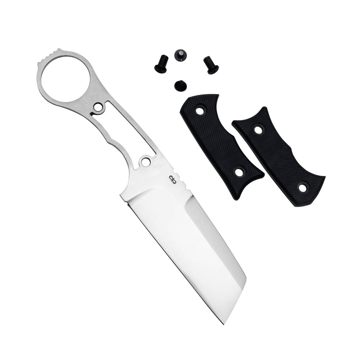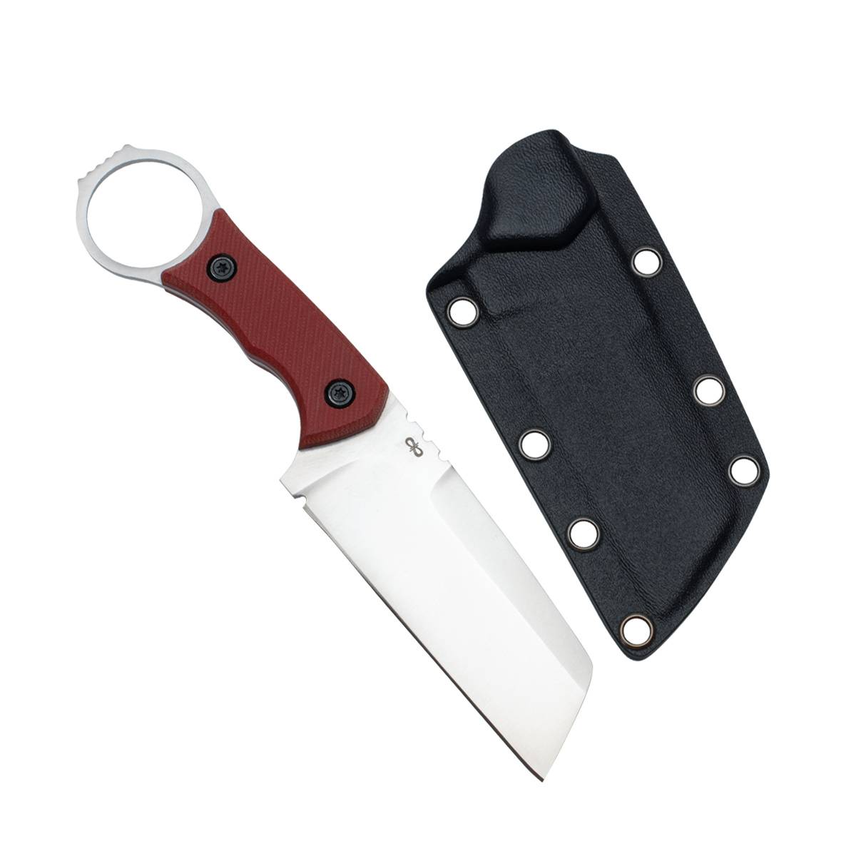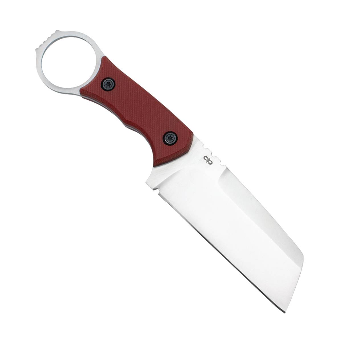 Тип профиля клинка Sheepsfoot Blade (sheep – овца, т.е. клинок в форме овечьего копыта) обеспечивает ножу неагрессивный кончик и безопасное использование, к примеру, в спасательных операциях. За счет выборки металла на клинке существенно уменьшена масса ножа. На ближней к рукояти части обуха имеются насечки под большой палец, чтобы не скользил при интенсивной работе. Хвостовик ножа имеет отверстие большого диаметра, оно служит для более удобного извлечения из ножен и более крепкого удержания в руке. С отверстием в тыльной части нож надежно фиксируется пальцем при прямом и обратном хвате, его практически невозможно выбить из руки. Насечки на тыльной части отверстия могут служить стеклоколом.