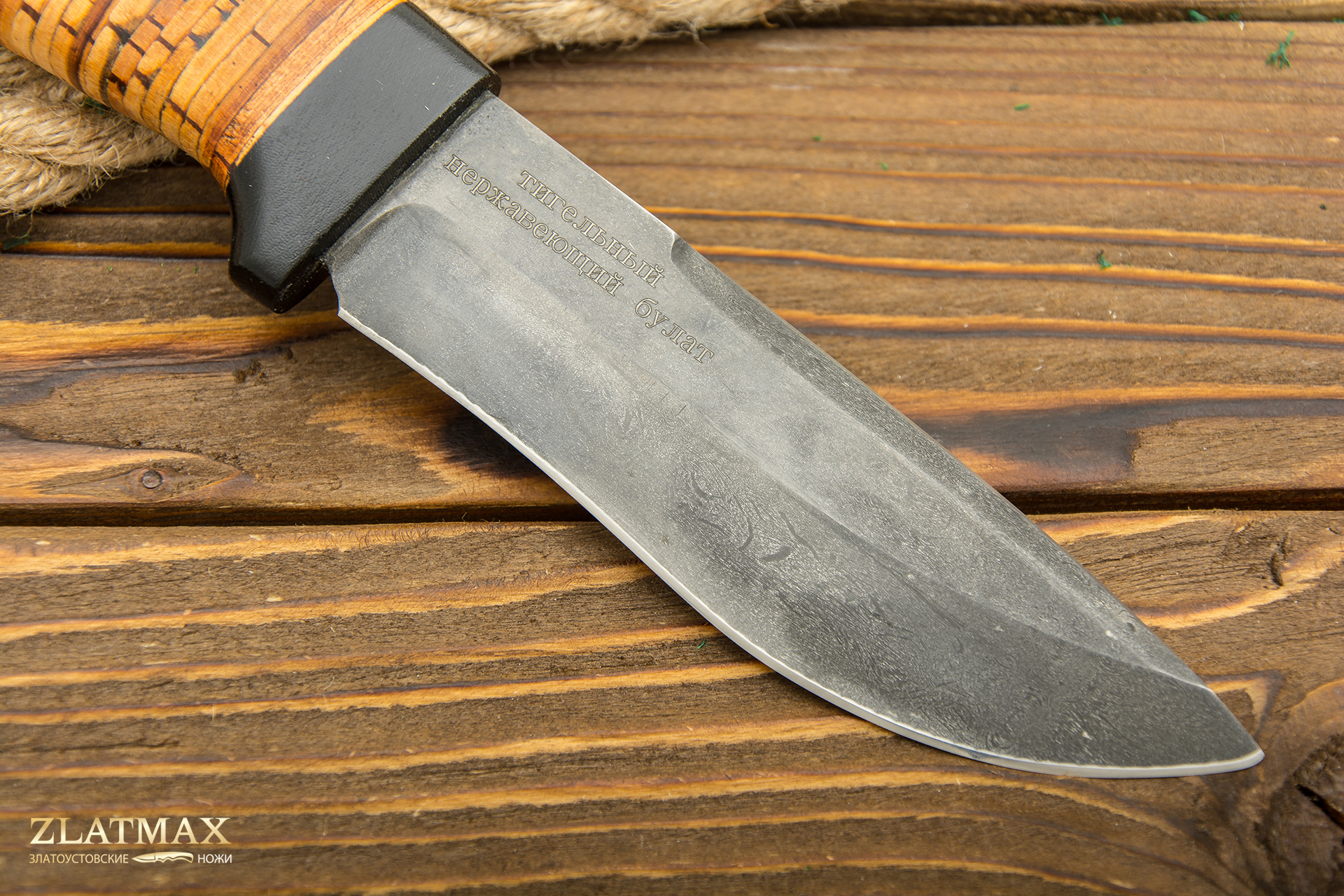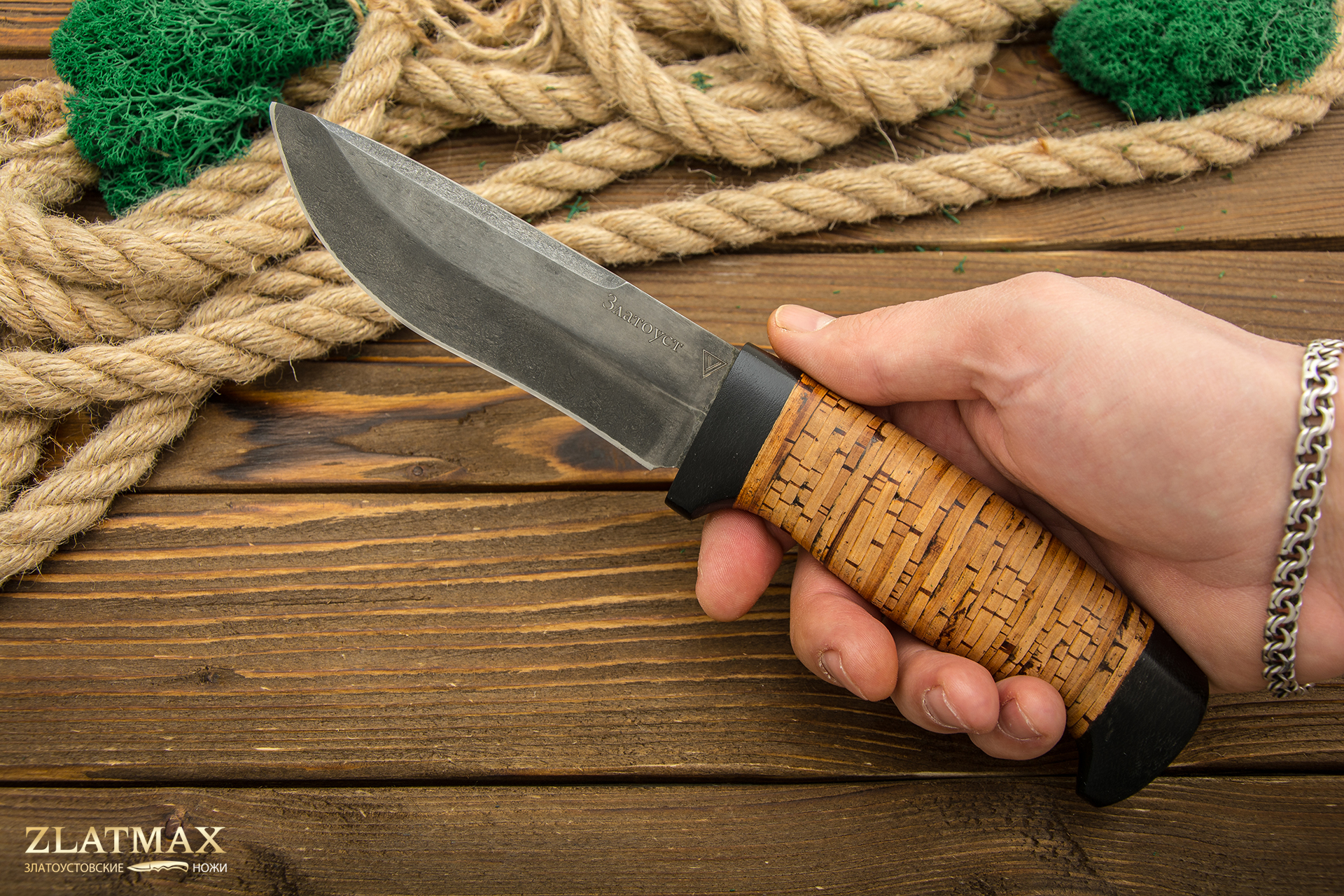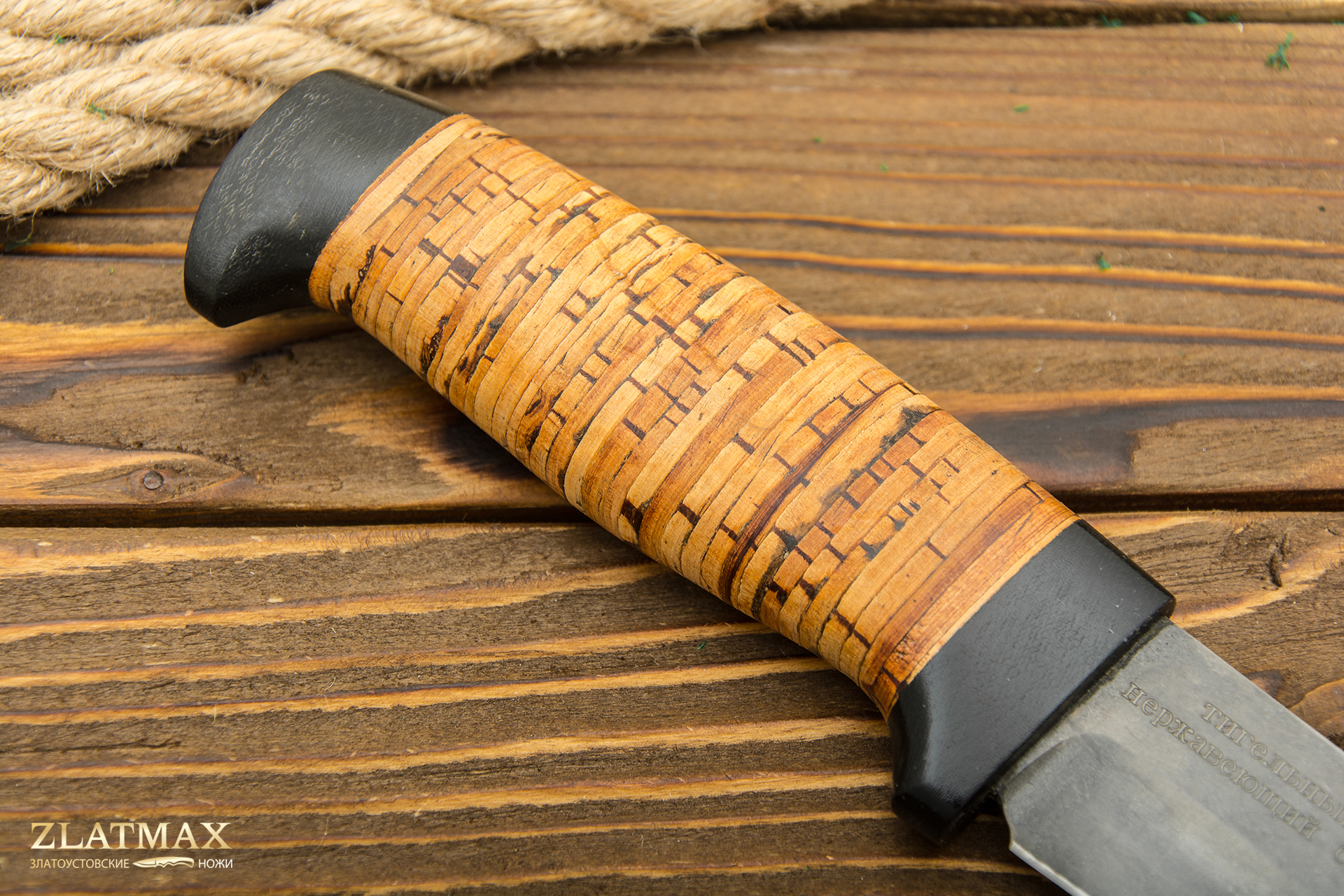Особенность бересты - она имеет низкую теплопроводность, поэтому пользоваться изделиями из нее комфортно и в теплое, и в холодное время года. Рукоять ножа, выполненная из бересты, не будет скользить в руке, гарантирует надежный хват, даже если она испачкана в чем-то.