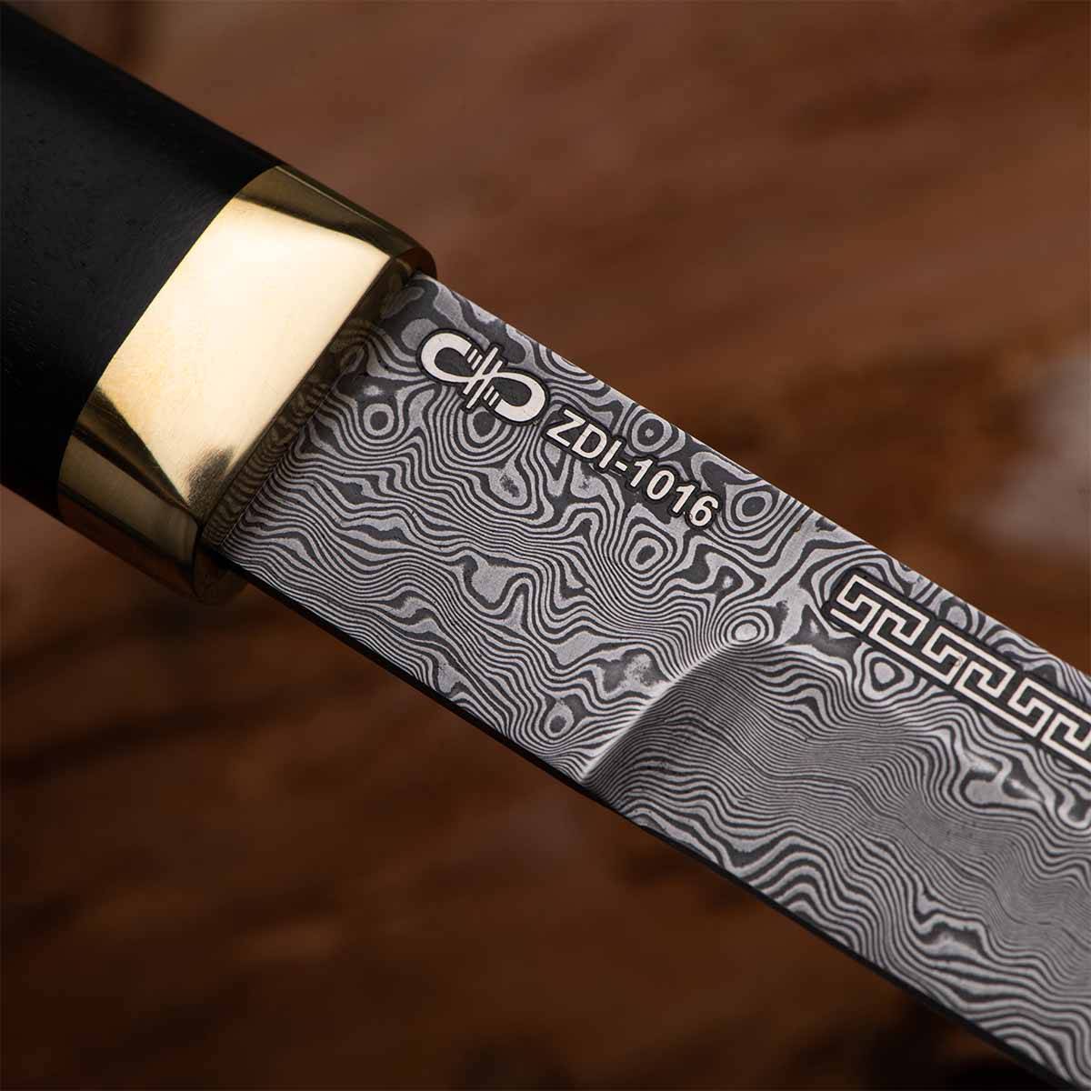 Первые буквы названия ZDI-1016 Компания использует в обозначении своих композиций: ZDI – высокоуглеродистые высоколегированные (атмосферостойкие) композиции. Первые две цифры в обозначении соответствуют среднему содержанию углерода, вторые две цифры – среднему содержанию легирующих элементов. Высокое содержание углерода и наличие специальных карбидов (хрома, молибдена, ванадия и т.д.) обеспечивают клинку высокие эксплуатационные (режущие свойства, прочность и т.д.) и декоративные свойства.