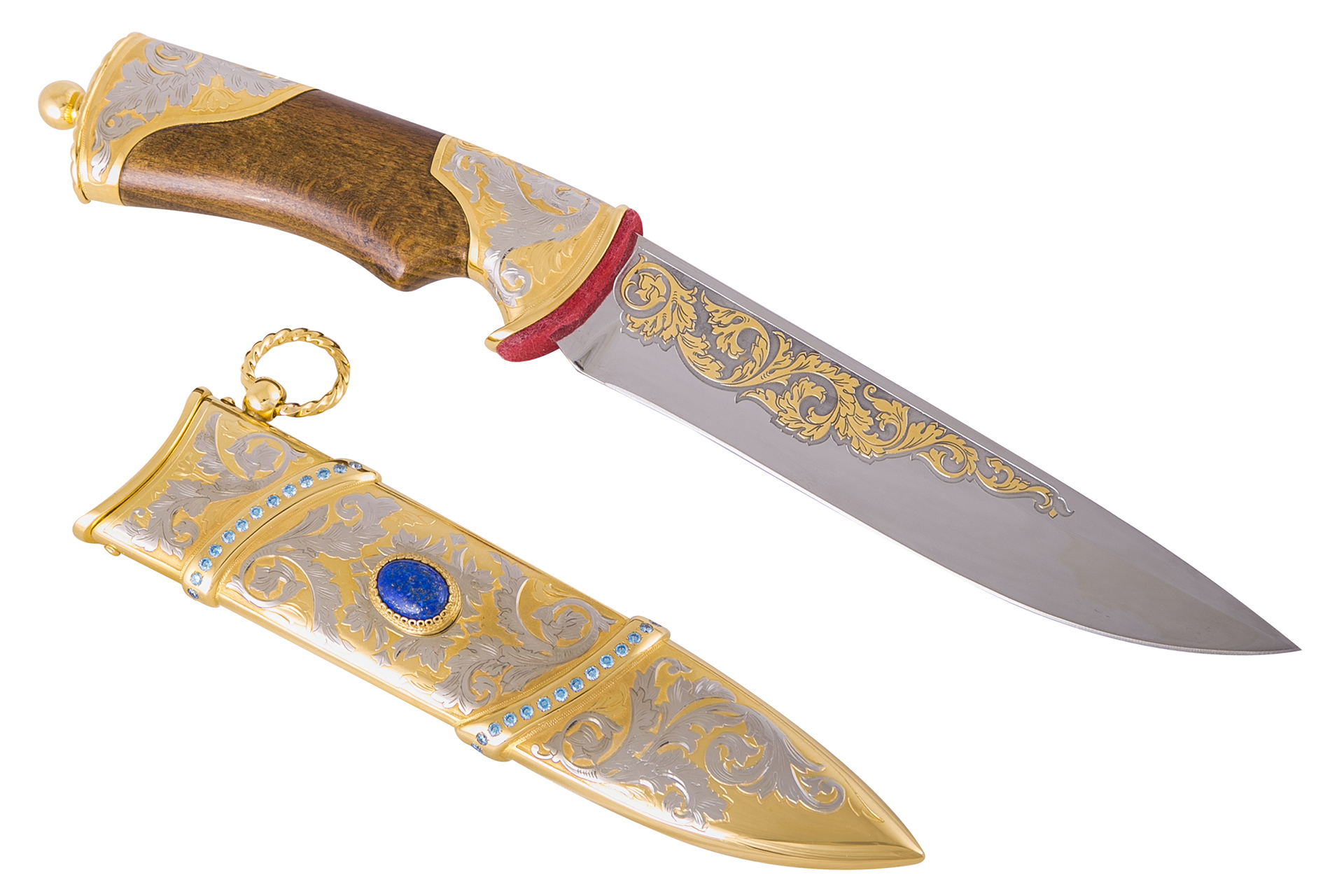 Настоящим талисманом для всех любителей холодного оружия наверняка станет нож «Лазурит». На первый взгляд может показаться, что он очень прост и лаконичен в своем исполнении. На самом деле же в этом и кроется вся красота. Идеальные линии, прорисованные вручную, тонкая работа над каждой деталью…Мастера знают, чем удивить своих покупателей, ведь такой презент наверняка запомнится надолго!