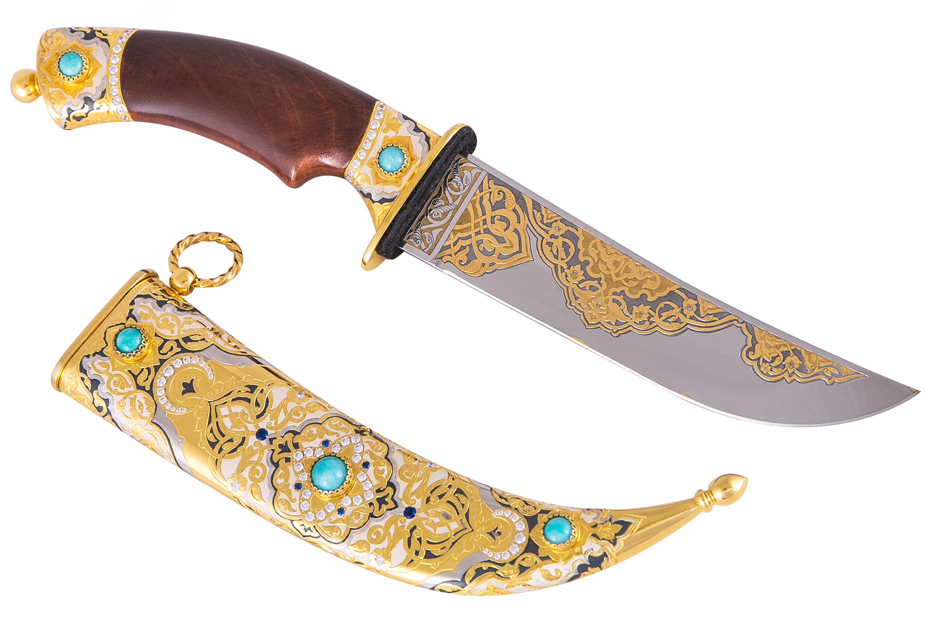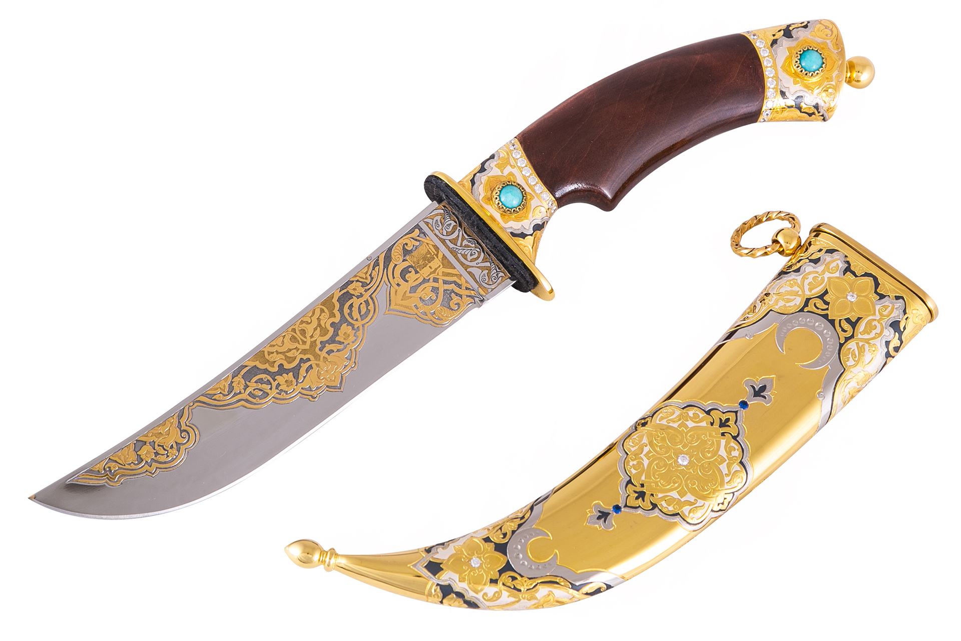 Ножи… Кухонные, охотничьи, разделочные…У каждого из них своя технология изготовления, предназначение и цена. А как насчет коллекционных изделий? Некоторые из них обречены лежать в коробках, другие достают любоваться вновь и вновь. Именно к числу последних относится «Луна» - нож, в котором умело сочетаются бирюза, ювелирные камни и холод металла. Такой подарок можно дополнить дарственной надписью, что сделает его еще ценнее для получателя.