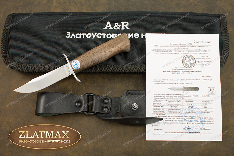 Нож детский Егоза является ножом туристическим и не относится к холодному оружию. Соответствует требованиям ГОСТ Р 51501-99 «Ножи туристические и специальные спортивные. Общие технические условия».