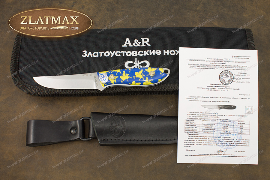 Нож детский Пегасик является ножом туристическим и не относится к холодному оружию. Соответствует требованиям ГОСТ Р 51501-99 «Ножи туристические и специальные спортивные. Общие технические условия».