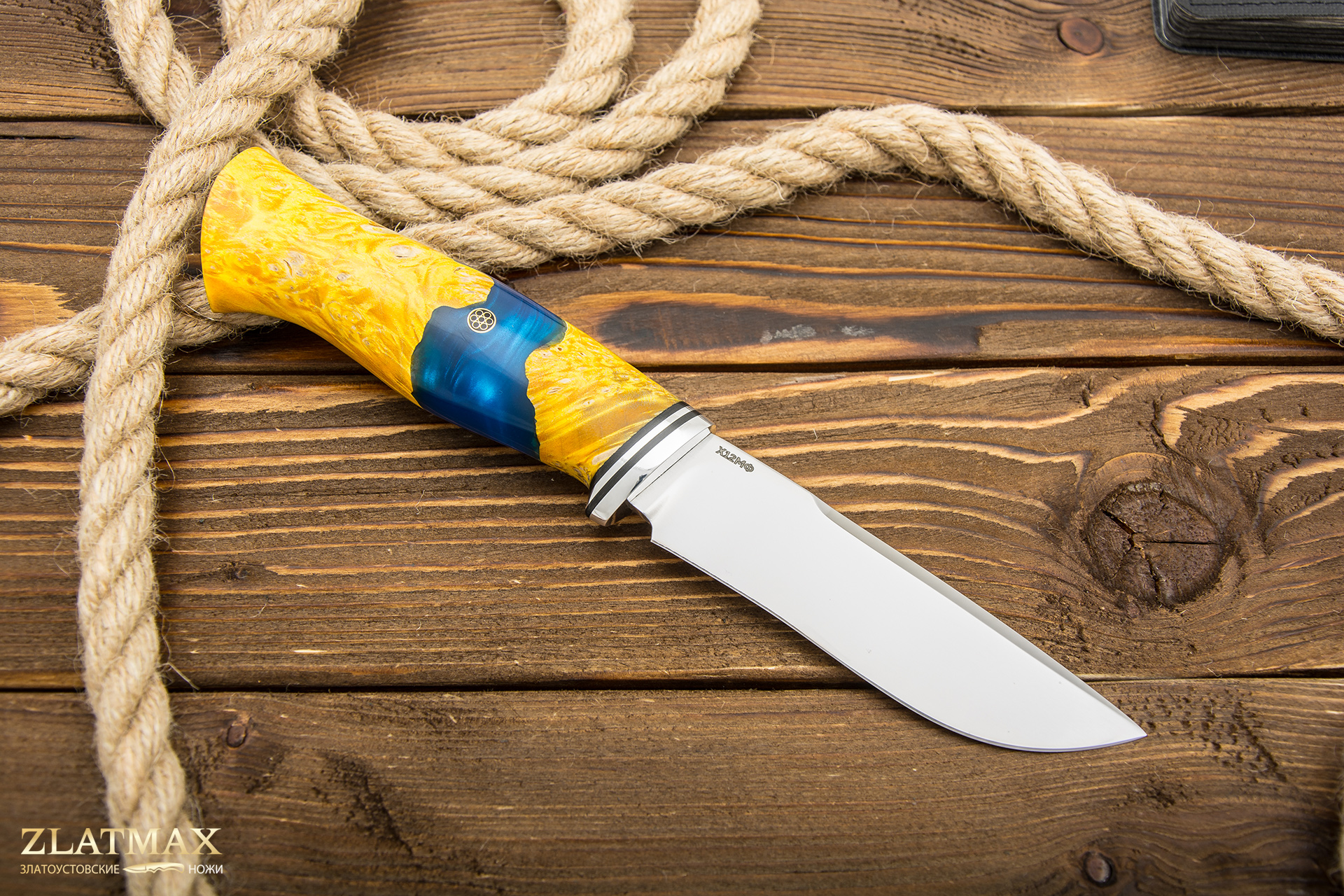 Х12МФ - сталь предназначена для изготовления инструментов по технологии холодной штамповки. В соответствии с гостом используется в изготовлении режущих инструментов, таких как резцы и фрезы. Обладает умеренной вязкостью достаточной прочностью. Имеет относительную стойкость к коррозии. В настоящее время пользуется большой популярностью в отечественной ножевой промышленности. Что не удивительно, ведь сталь Х12МФ сочетает в себе все основные характеристики хорошего, современного ножа. Ножи выполненные из стали Х12МФ порадуют вас хорошей стойкостью к коррозии и хорошей прочностью при изгибе.