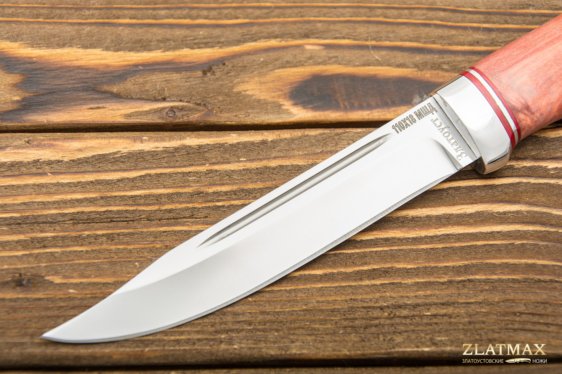 Туристический нож Финка Тайга, сталь 110Х18М-ШД, рукоять Стабилизированная карельская береза