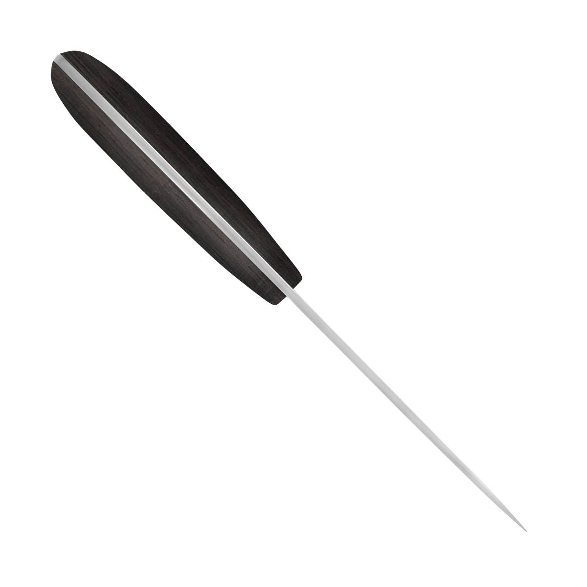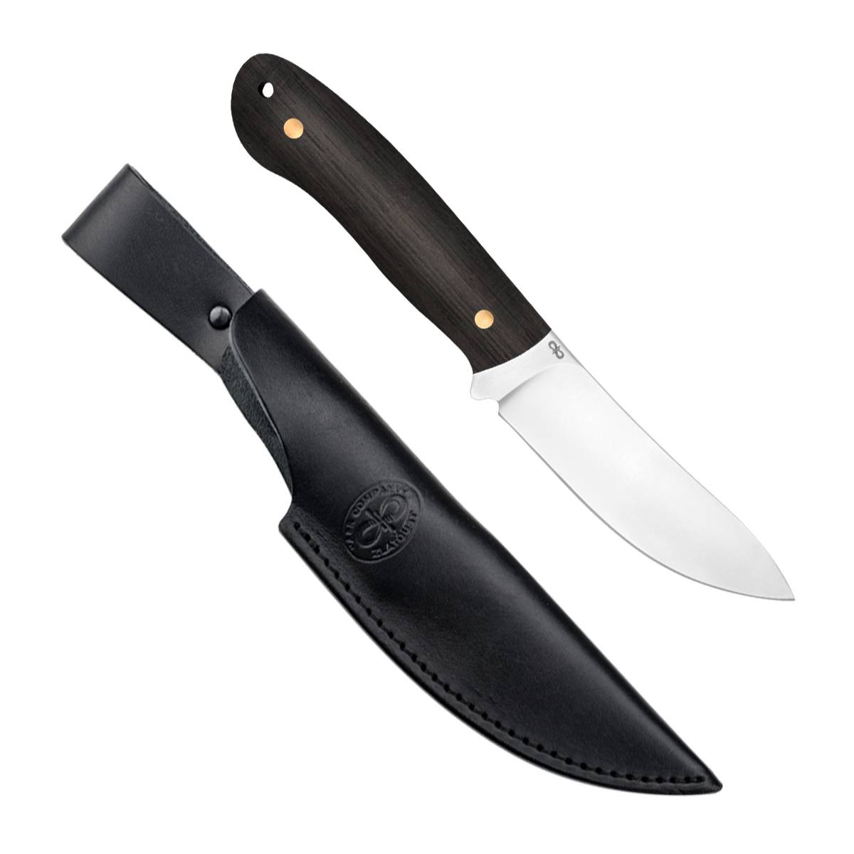 Красивый и удобный малый разделочный нож с клинком, имеющим прямые спуски от обуха, образующие тонкое, прекрасно режущее лезвие. Демонстрирует отличные режущие качества. Форма клинка, типичная для скинера, позволяет снимать шкуру разделываемого животного, без риска при этом повредить брюшину. Клинок имеет длину 89 мм и толщину обуха 3,4 мм. Рукоять удобно ложится практически в любую ладонь. Монтаж рукояти накладной, неразборный. Отличный выбор для разделочных работ на охоте и на ферме.