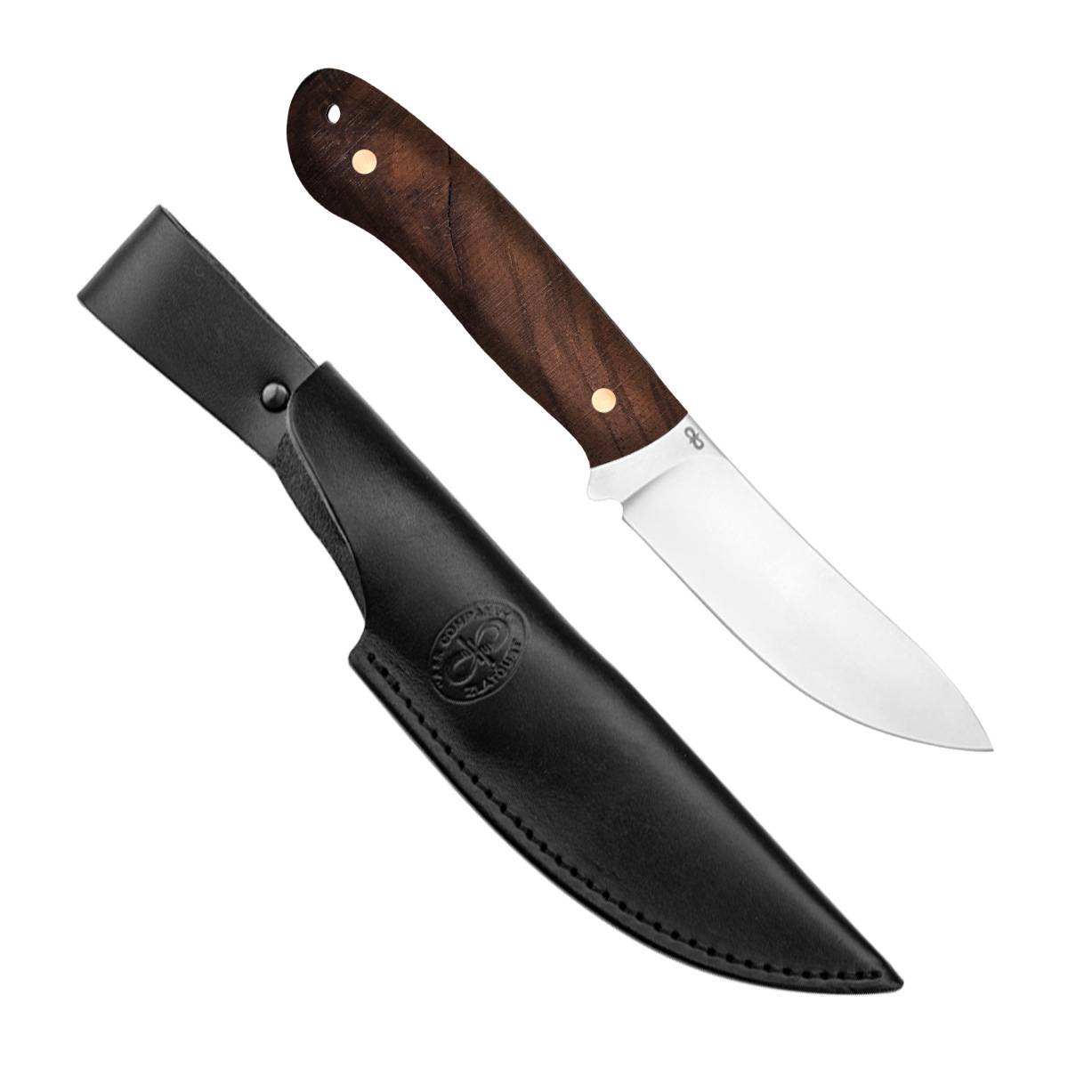 Красивый и удобный малый разделочный нож с клинком, имеющим прямые спуски от обуха, образующие тонкое, прекрасно режущее лезвие. Демонстрирует отличные режущие качества. Форма клинка, типичная для скинера, позволяет снимать шкуру разделываемого животного, без риска при этом повредить брюшину. Клинок имеет длину 89 мм и толщину обуха 3,4 мм. Рукоять удобно ложится практически в любую ладонь. Монтаж рукояти накладной, неразборный. Отличный выбор для разделочных работ на охоте и на ферме.