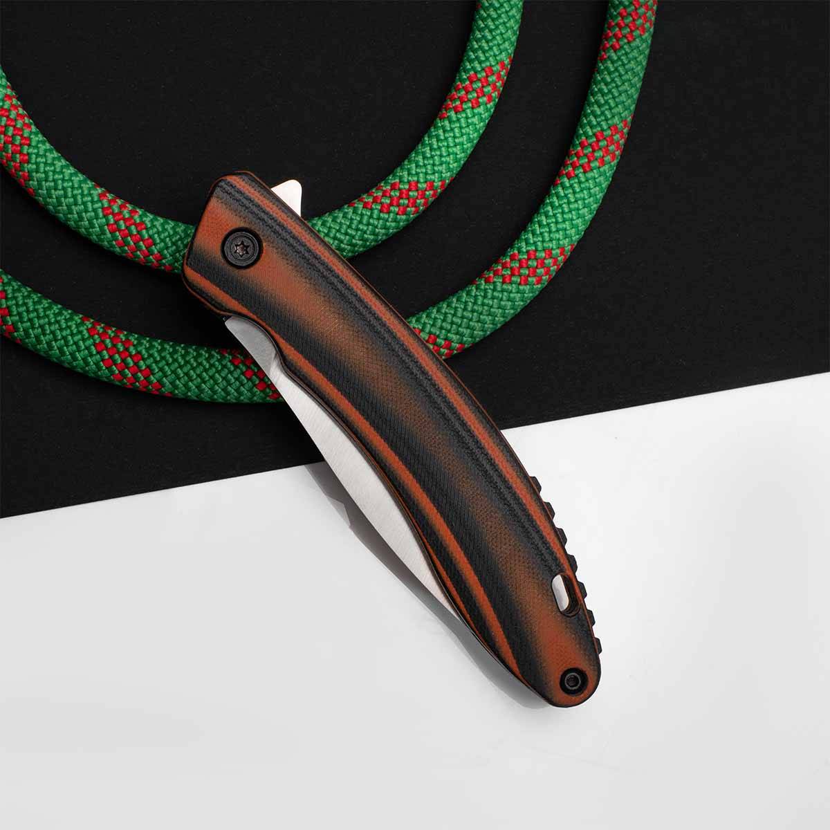 Флиппер («плавник»), расположенный на пяте клинка снизу у осевого механизма, позволяет легко и быстро открыть складной «Хантер» одной рукой. Замок типа Liner-Lock обеспечивает надежную фиксацию лезвия в открытом состоянии. Рукоять «Хантера» имеет эргономичную форму, позволяющую надежно удерживать нож в руке и контролировать движения. Доступные варианты материалов для накладок: микарта/G10, карбон, текстолит.