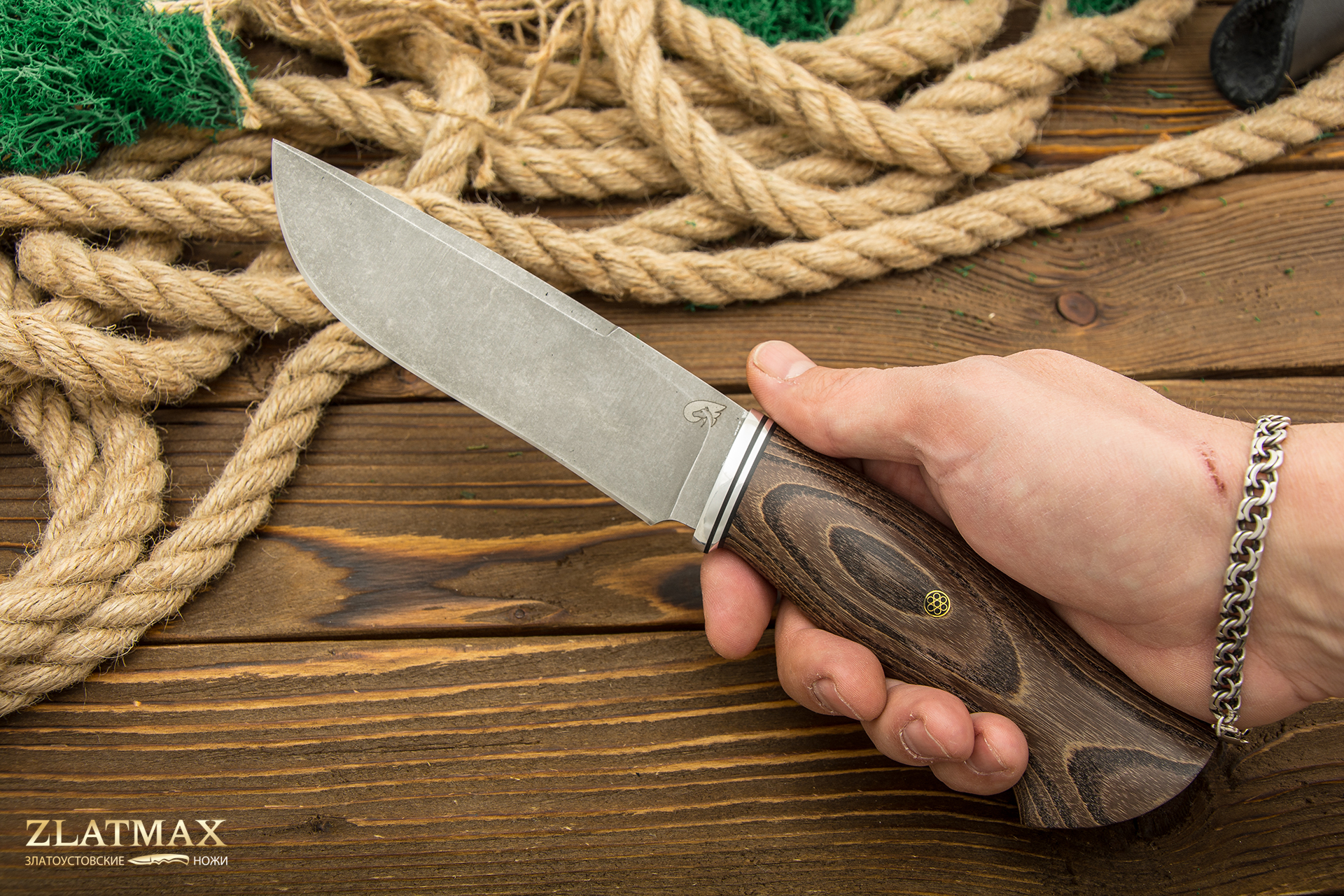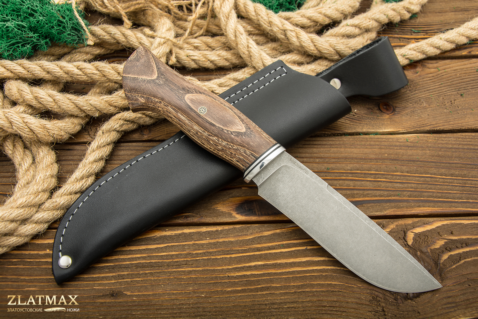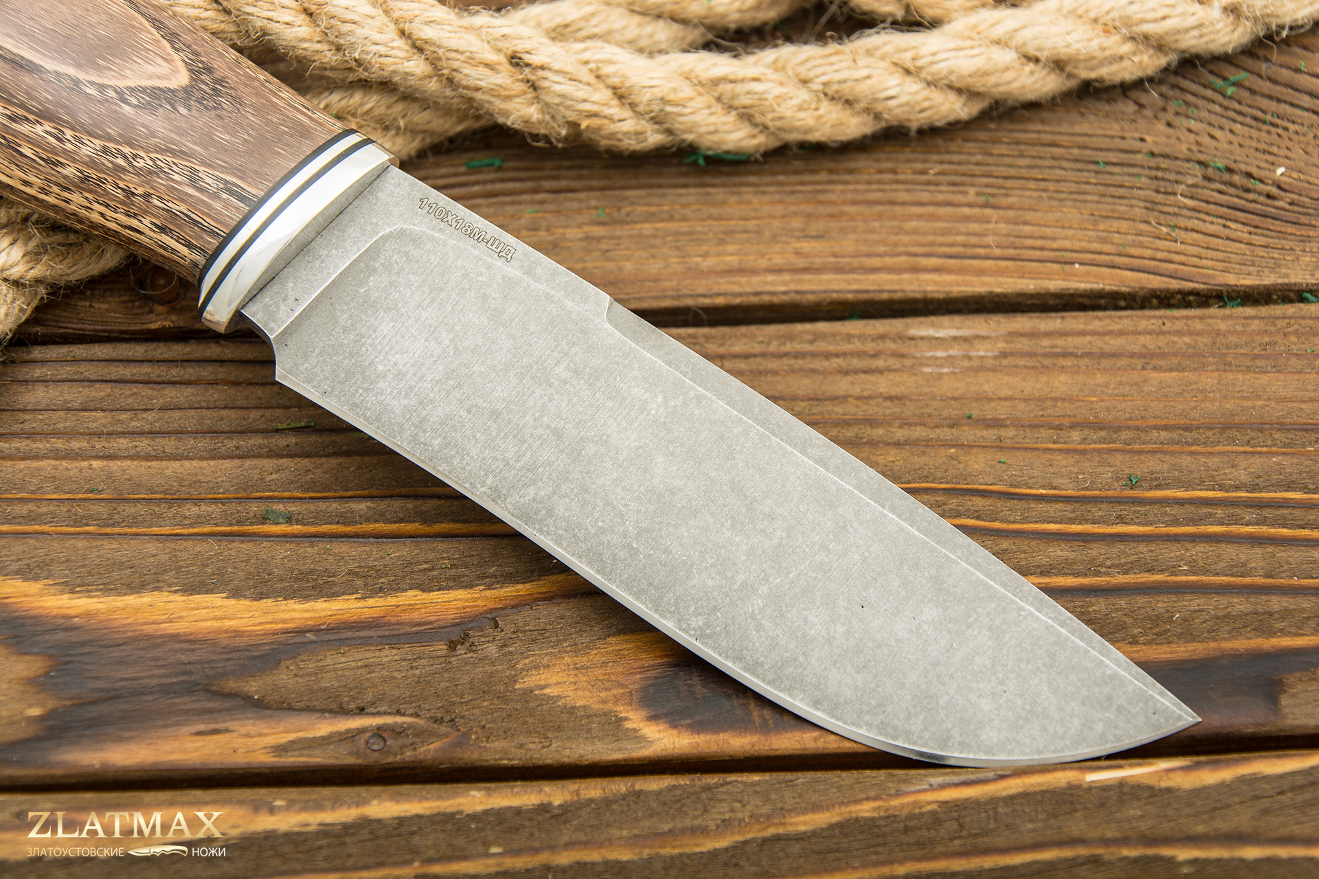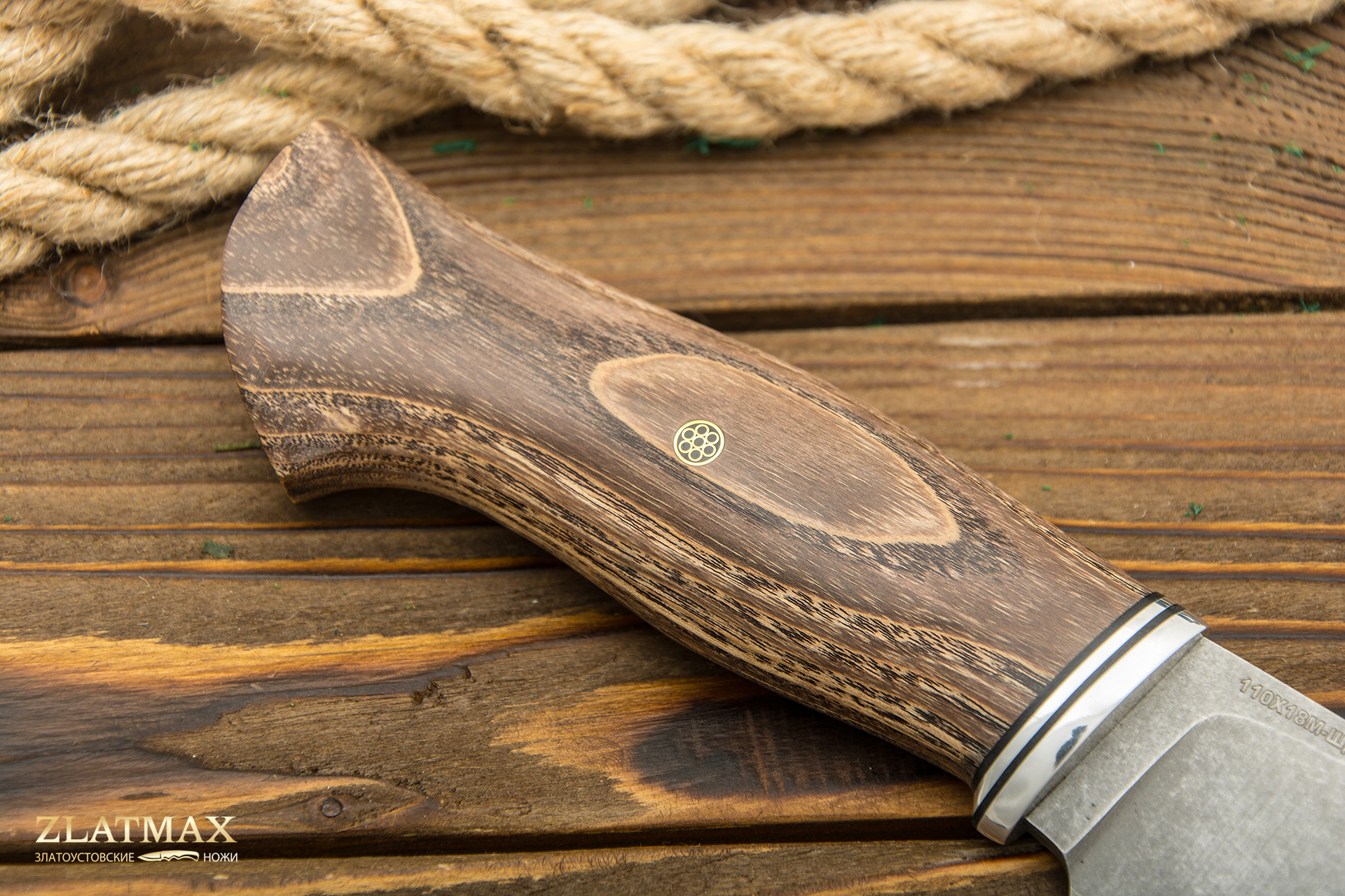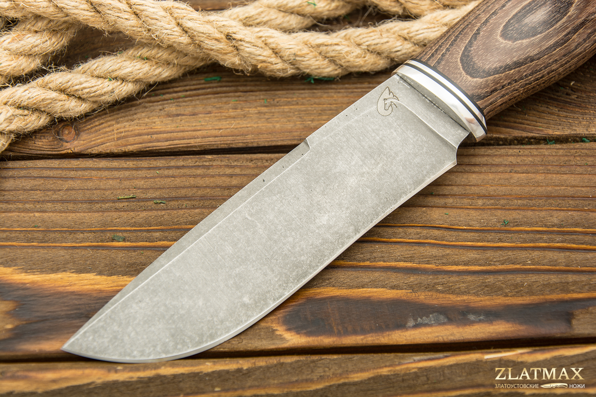 Нож Итиль - это прекрасный образец высококачественного охотничьего ножа, изготовленного из прочной стали 110Х18М-ШД. Клинок ножа обработан по технологии stonewash, что придает ему не только стильный внешний вид, но и дополнительную защиту. Рукоять ножа изготовлена из стабилизированной древесины, что обеспечивает надежный и удобный хват в любых условиях.