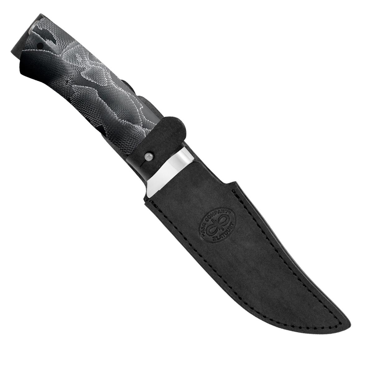 Средний универсальный, легкий и прочный нож с клинком, имеющим популярный обушок «лещиком». Вогнутые линзовидные спуски от середины ширины клинка образуют тонкое, прекрасно режущее лезвие. Демонстрирует отличные режущие качества. Толщина обуха в 2,4 мм позволяет оставить широкую голомень, что придает клинку дополнительную прочность. Рукоять эргономичной формы уверенно и прочно ложится в любую ладонь. А полноценная гарда не дает соскользнуть пальцам при резах от себя. Монтаж рукояти сквозной, неразборный. На навершии рукояти имеется отверстие под темляк. Отличный выбор для большинства видов работы в лесу.