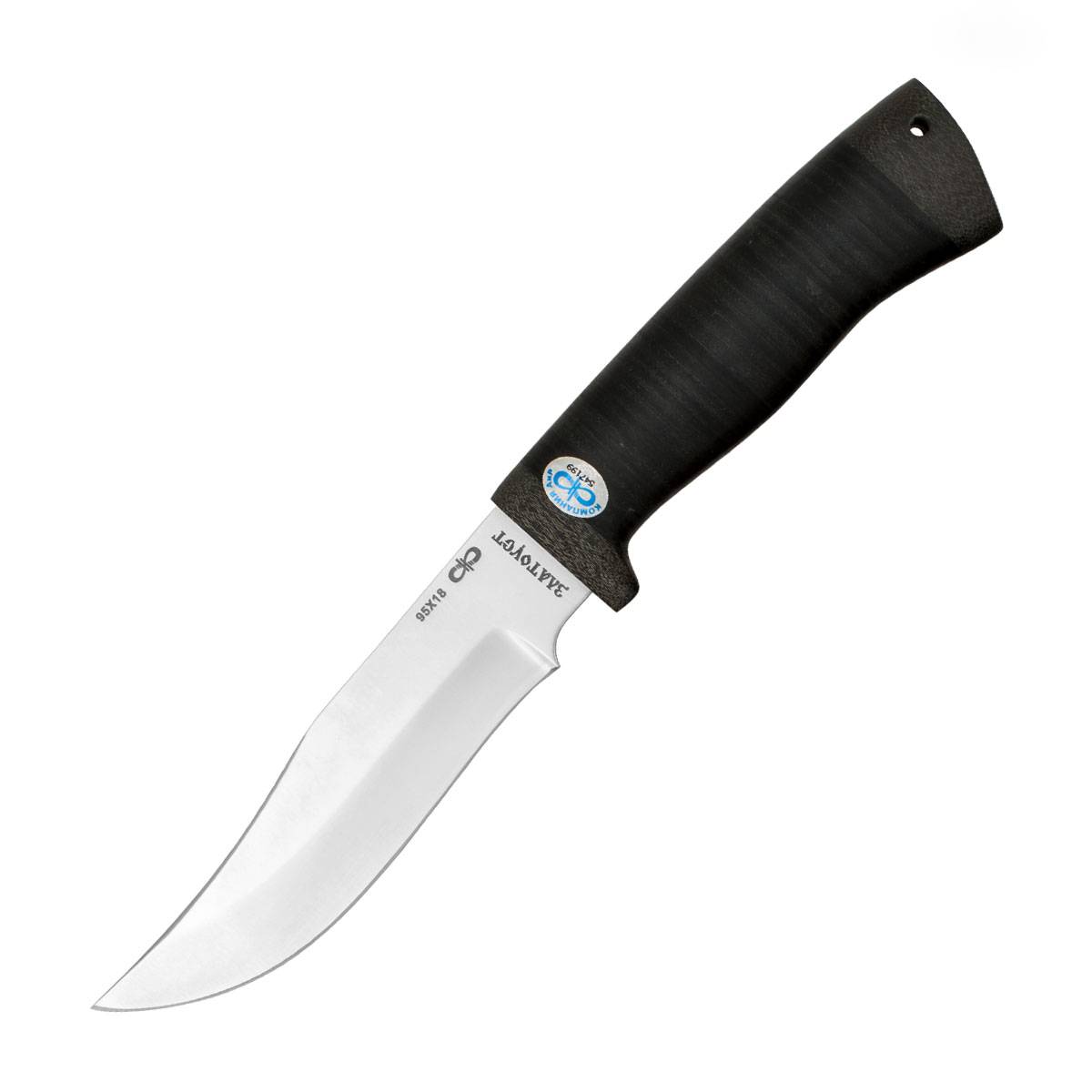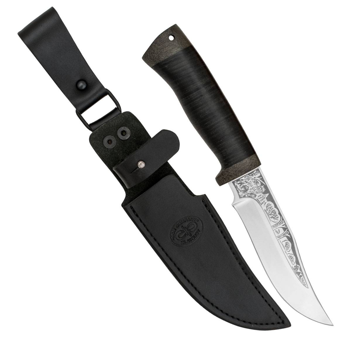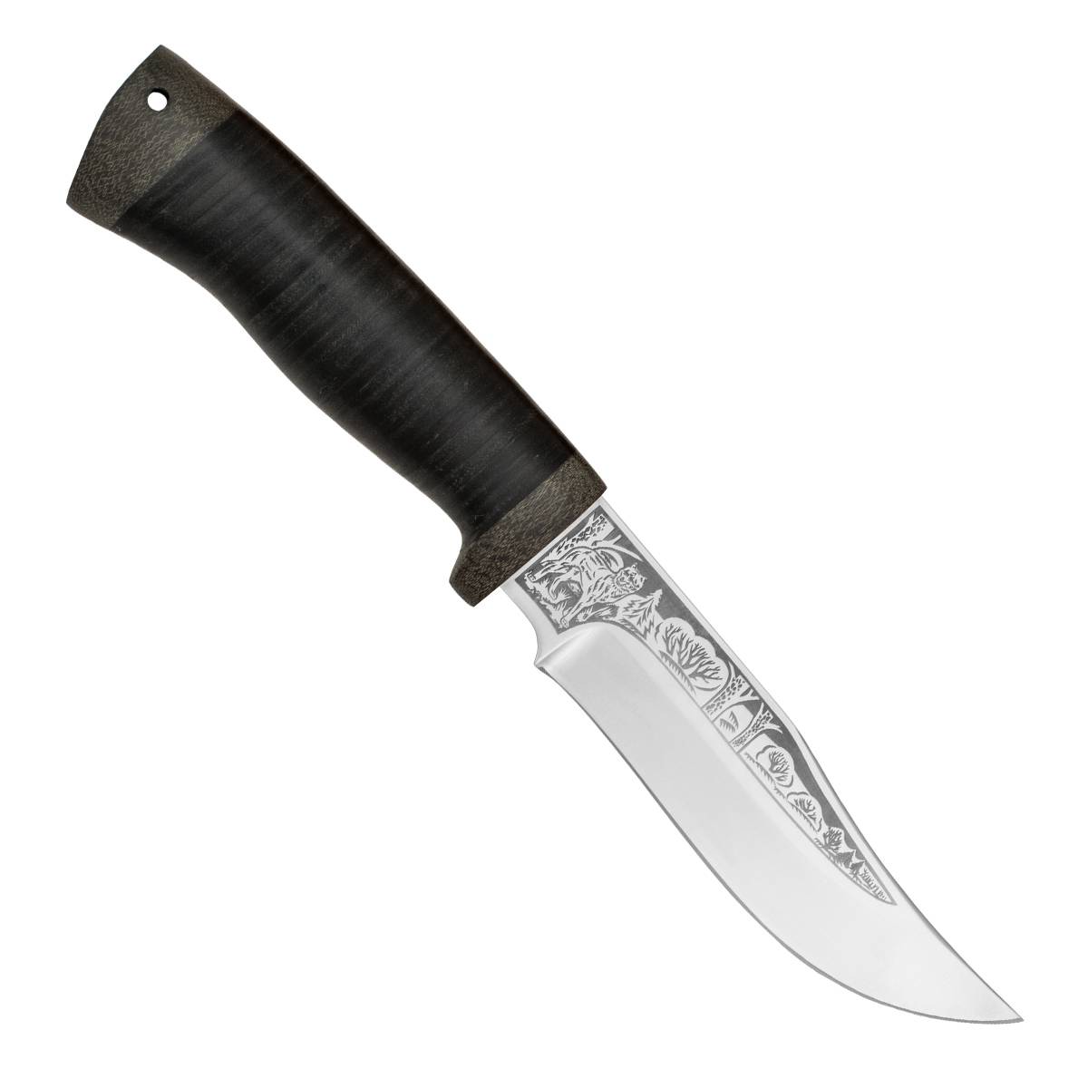 Средний универсальный, легкий и прочный нож с клинком, имеющим популярный обушок «лещиком». Вогнутые линзовидные спуски от середины ширины клинка образуют тонкое, прекрасно режущее лезвие. Демонстрирует отличные режущие качества. Толщина обуха в 2,4 мм позволяет оставить широкую голомень, что придает клинку дополнительную прочность. Рукоять эргономичной формы уверенно и прочно ложится в любую ладонь. А полноценная гарда не дает соскользнуть пальцам при резах от себя. Монтаж рукояти сквозной, неразборный. На навершии рукояти имеется отверстие под темляк. Отличный выбор для большинства видов работы в лесу.