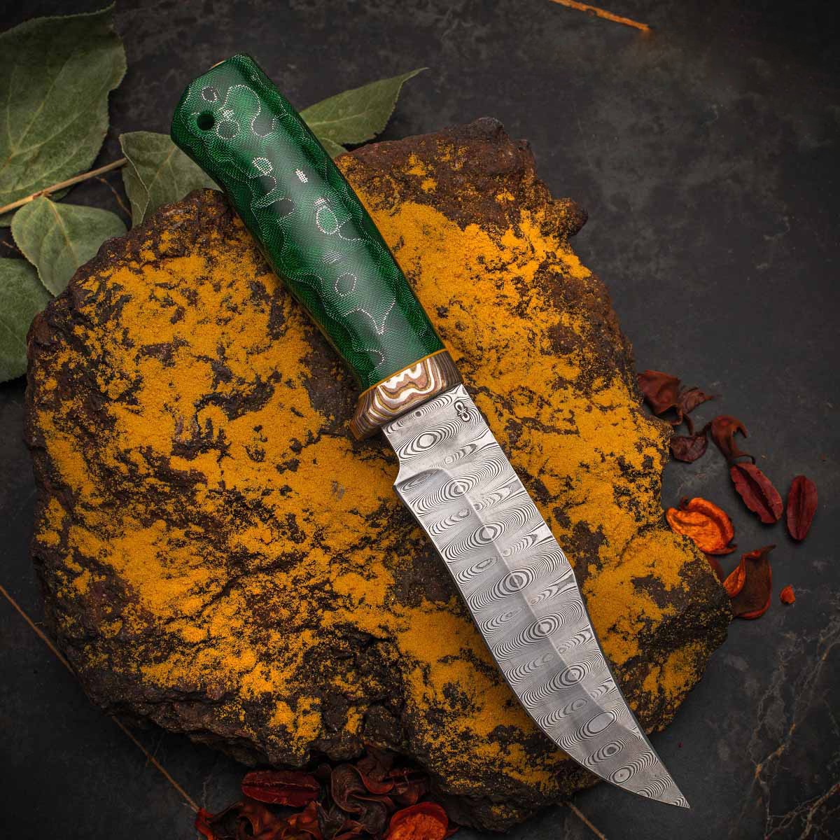 Первые буквы названия ZDI-1016 Компания использует в обозначении своих композиций: ZDI – высокоуглеродистые высоколегированные (атмосферостойкие) композиции. Первые две цифры в обозначении соответствуют среднему содержанию углерода, вторые две цифры – среднему содержанию легирующих элементов. Высокое содержание углерода и наличие специальных карбидов (хрома, молибдена, ванадия и т.д.) обеспечивают клинку высокие эксплуатационные (режущие свойства, прочность и т.д.) и декоративные свойства.