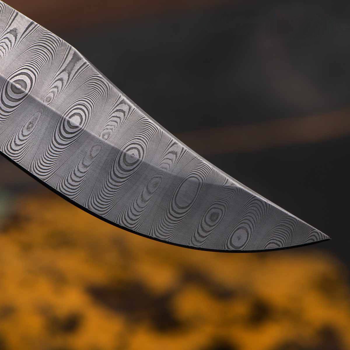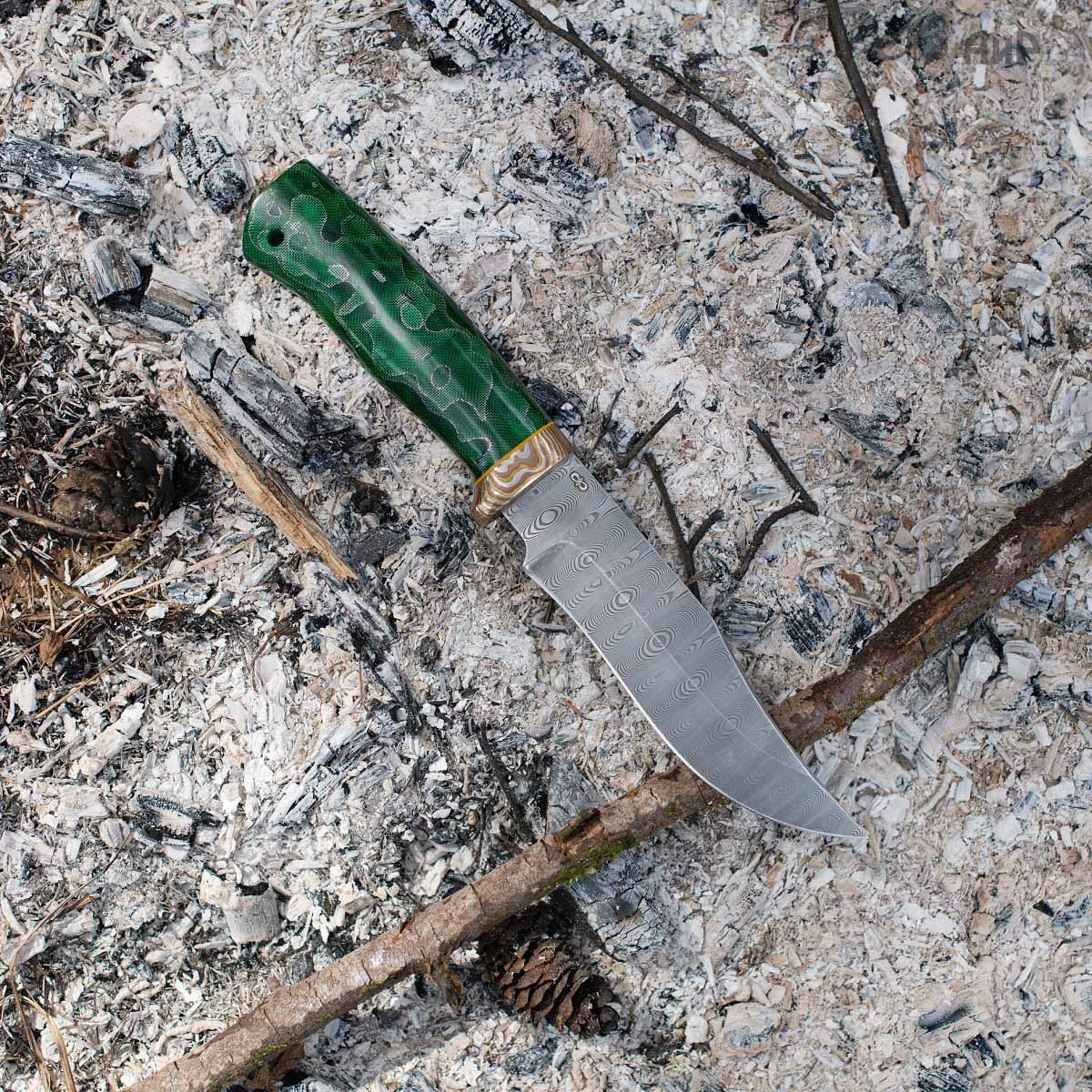 Средний универсальный, легкий и прочный нож с клинком, имеющим популярный обушок «лещиком». Вогнутые линзовидные спуски от середины ширины клинка образуют тонкое, прекрасно режущее лезвие. Демонстрирует отличные режущие качества. Толщина обуха в 2,4 мм позволяет оставить широкую голомень, что придает клинку дополнительную прочность. Рукоять эргономичной формы уверенно и прочно ложится в любую ладонь. А полноценная гарда не дает соскользнуть пальцам при резах от себя. Монтаж клинка сквозной, неразборный. На навершии рукояти имеется отверстие под темляк. Отличный выбор для большинства видов работы в лесу.