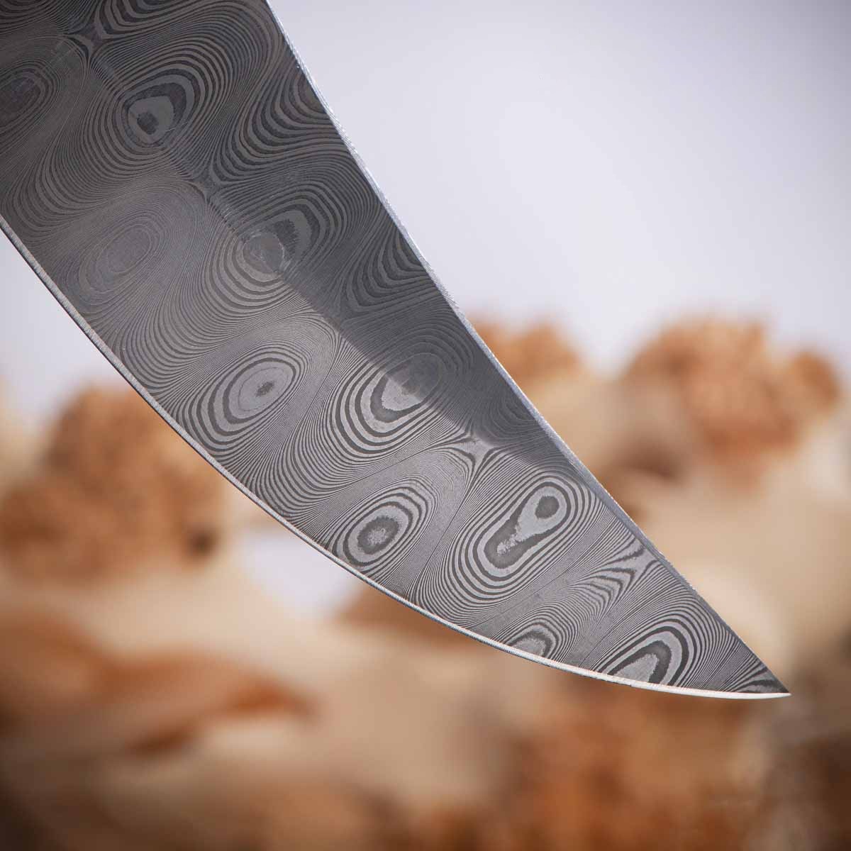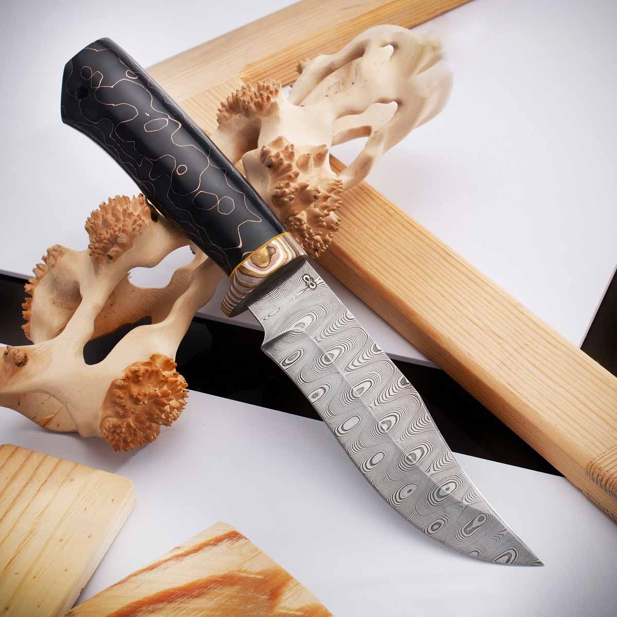 Средний универсальный, легкий и прочный нож с клинком, имеющим популярный обушок «лещиком». Вогнутые линзовидные спуски от середины ширины клинка образуют тонкое, прекрасно режущее лезвие. Демонстрирует отличные режущие качества. Толщина обуха в 2,4 мм позволяет оставить широкую голомень, что придает клинку дополнительную прочность. Рукоять эргономичной формы уверенно и прочно ложится в любую ладонь. А полноценная гарда не дает соскользнуть пальцам при резах от себя. Монтаж клинка сквозной, неразборный. На навершии рукояти имеется отверстие под темляк. Отличный выбор для большинства видов работы в лесу.
