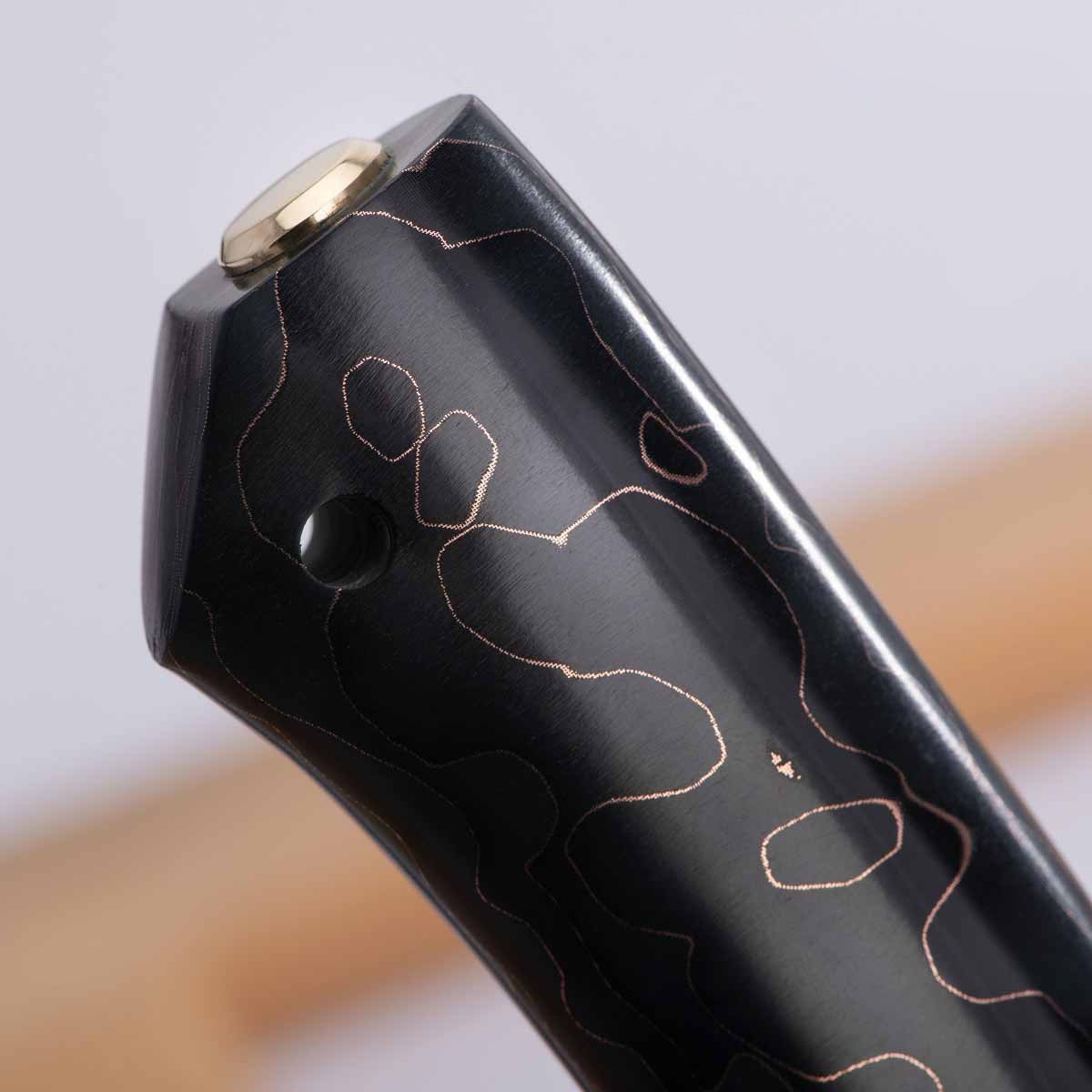 Первые буквы названия ZDI-1016 Компания использует в обозначении своих композиций: ZDI – высокоуглеродистые высоколегированные (атмосферостойкие) композиции. Первые две цифры в обозначении соответствуют среднему содержанию углерода, вторые две цифры – среднему содержанию легирующих элементов. Высокое содержание углерода и наличие специальных карбидов (хрома, молибдена, ванадия и т.д.) обеспечивают клинку высокие эксплуатационные (режущие свойства, прочность и т.д.) и декоративные свойства.