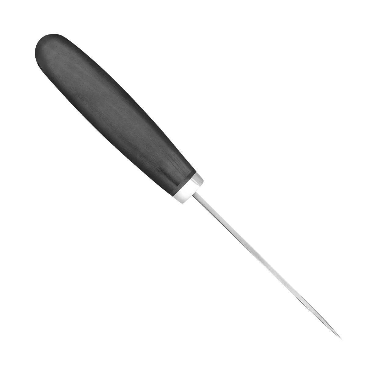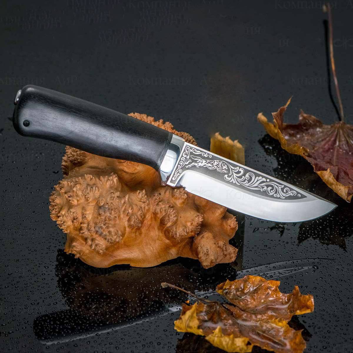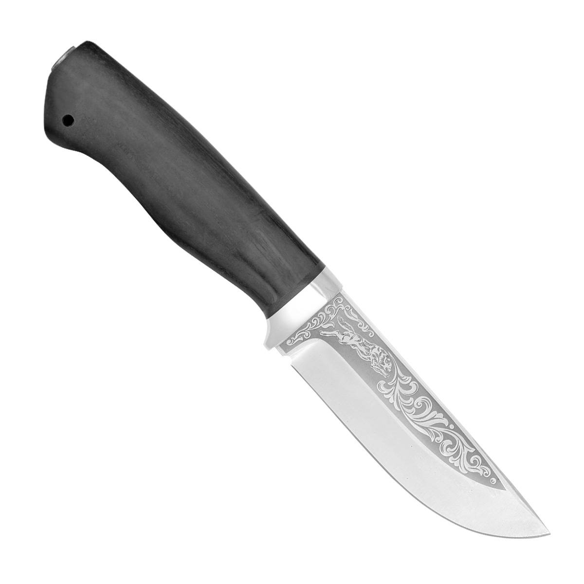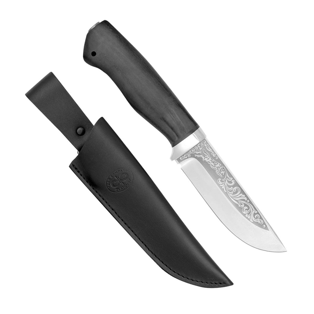 Средний универсальный, легкий и прочный нож с широким клинком, имеющим вогнутые линзовидные спуски от середины клинка, образующие тонкое, прекрасно режущее лезвие. Демонстрирует отличные режущие качества. Поэтому в умелых руках становится весьма серьезным инструментом. Клинок классической формы с приспущенным к острию обушком и толщиной 2,4 мм имеет широкую голомень. Эргономичная форма рукояти удобна даже для большой руки, уверенно и прочно ложится в любую ладонь. А оптимальной величины гарда не дает соскользнуть пальцам при резах от себя. Монтаж рукояти сквозной, неразборный. Отличный выбор для большинства видов работы в лесу. Пользуется заслуженной популярностью у покупателей.