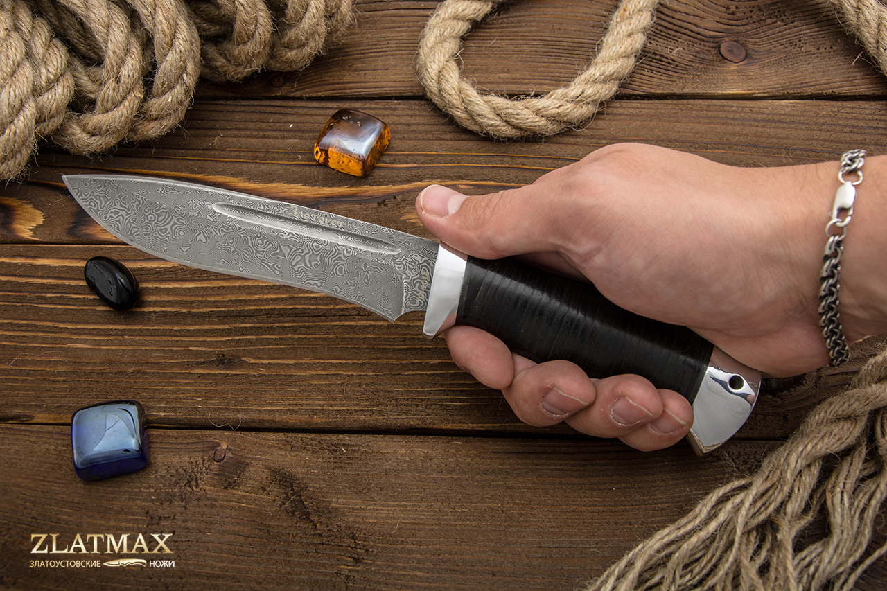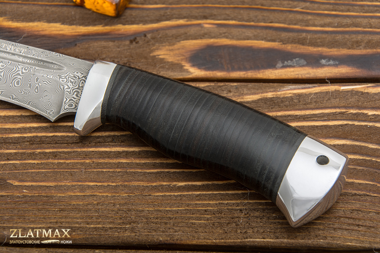 Наборная кожа - представляет из себя склеенные кожаные полоски. Из них получаются приятные на ощупь, теплые, удобные в руке рукояти для ножей. Такое изделие будет теплым даже при минусовой температуре, однако в условиях высокой влажности кожа мокнет, потребуется время, чтобы ее высушить.