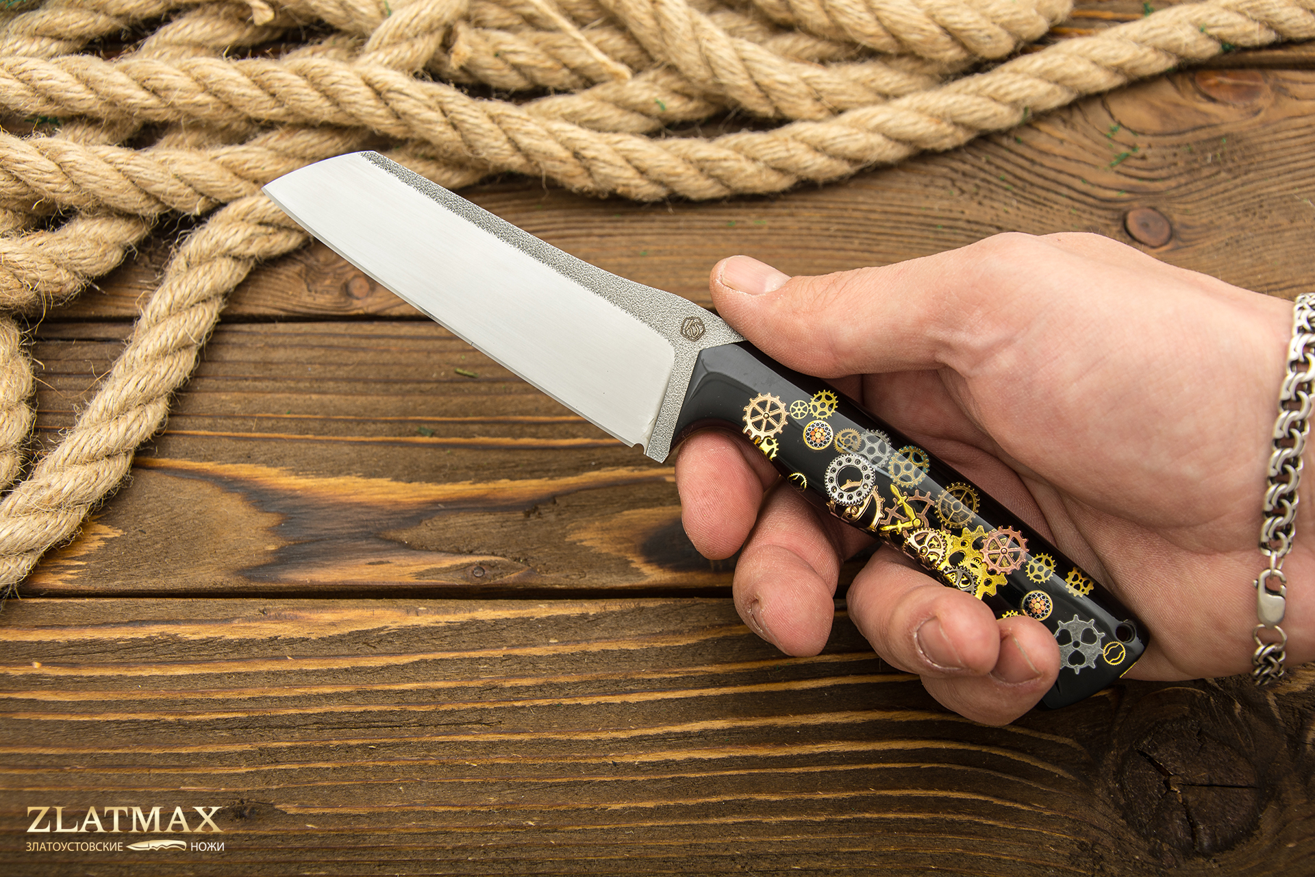 Нож Косатка - Универсальный городской помощник. Пригодится и на вылазки на природу, да и на кухне будет хорош. Конструкция - фултанг, монтаж на эпоксидный клей, сведение 0.3.